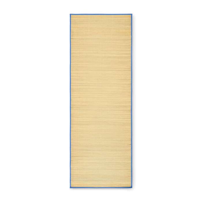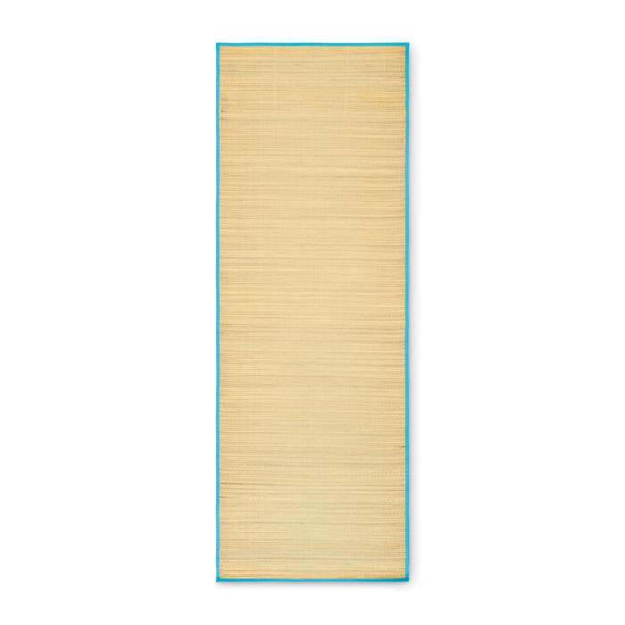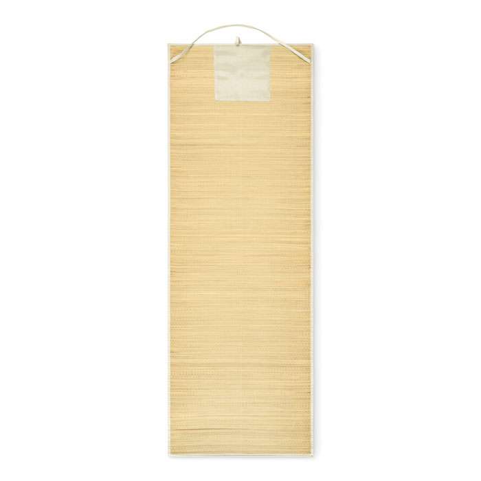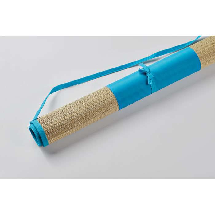 Hoprullbar liggunderlag för stranden bestående av naturstrå med bärrem av polyester.