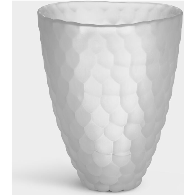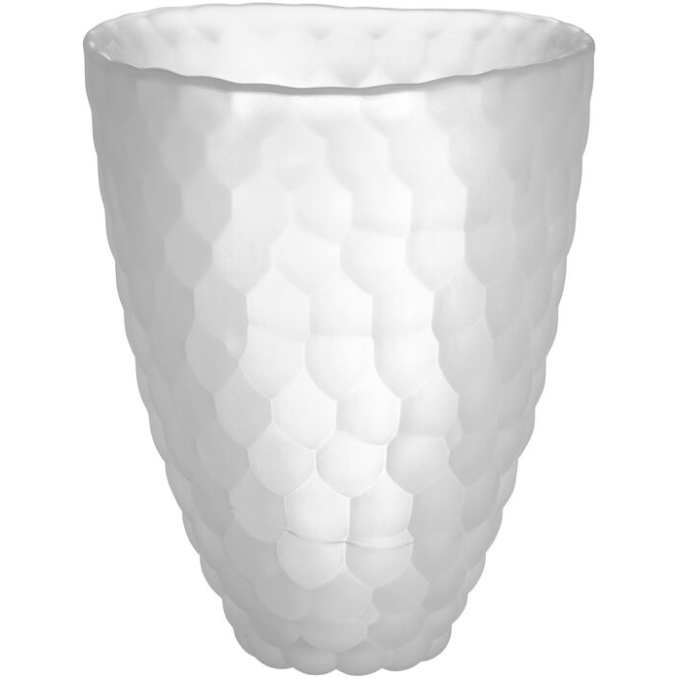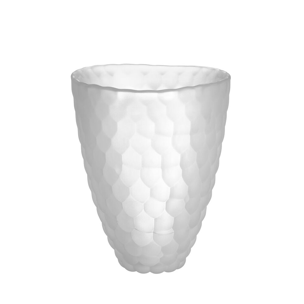 Vasen i serien Hallon har en design likt ett hallonbär med sitt mönster av runda kulor. Formgiven av Anne Nilsson.