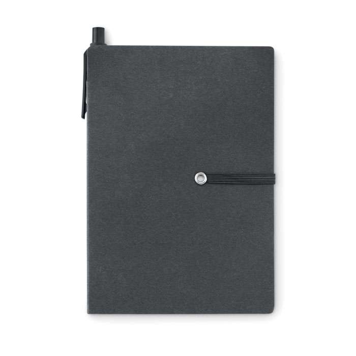 Anteckningsbok i återvunnet material, 70 sidor papper, post-it block och notisar. Elastiskt band runt boken och en penna med ABS-spets. Svart bläck. FSC®-certified | FSC MIX, P7.1, FSC-C213206
