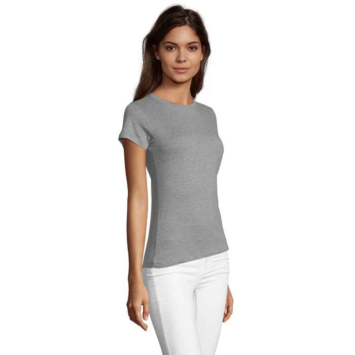 SOL’S REGENT FIT DAM, RUND KRAGE OCH FIGURNÄRA T-SHIRT FÖR DAMER, 100 % halvkammad ringspunnen bomull JERSEY 150, Tejp på insidan av kragen, Rund krage i ribbad elastan, Korta ärmar, Skuren och sydd, (1) Rosamelerad : 60 % bomull / 40 % polyester, (2) Himmelsblåmelerad : 60 % bomull / 40 % polyester, (3) Gråmelerad : 85 % bomull / 15 % viskos, (4) Mörkgråmelerad : 60 % bomull / 40 % polyester, (5) Oxblodmelerad : 60 % bomull / 40 % polyester, (6) Khakimelerad : 60 % bomull / 40 % polyester, (7) Denimblåmelerad : 60 % bomull / 40 % polyester för matchande storlekar, se storlekstabellen i avsnittet om produktdokumentation.
