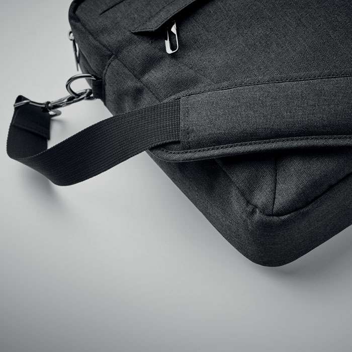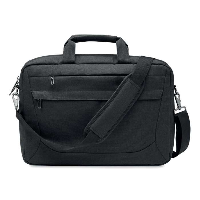 Dataväska för bärbar dator 15 tum i 600D RPET polyester. 2 inre huvudfack och stor frontficka med dragkedja. Den har en liten ficka med dragkedja. Avtagbara och justerbara axelremmar. Trolleyhållare på baksidan.