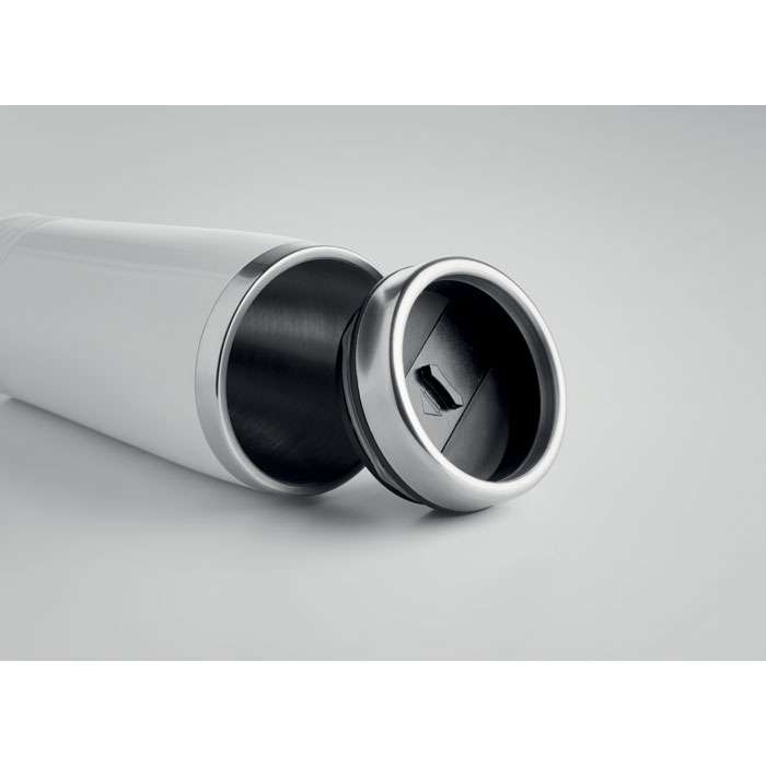 Termomugg i Rostfritt stål med dubbelvägg och svart PP-plast lock. Rymmer: 400 ml.