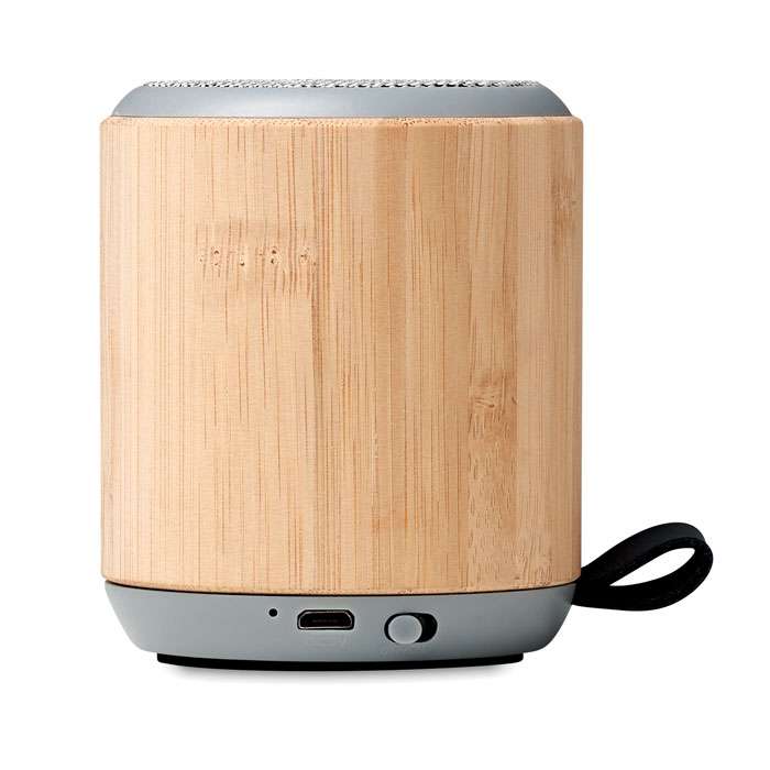 5.3 trådlös högtalare i bambuhölje och ABS på toppen med PU-rem. Inbyggt uppladdningsbart Li-Ion 300 mAh-batteri. Uteffekt: 3W, 4 Ohm. Speltid ca. 2 timmar.