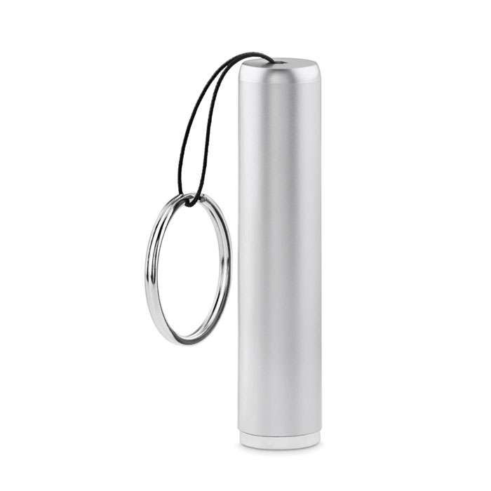 Ficklampa LED i ABS med nyckelring. Drivs av 3 st AG3-batterier som ingår. Den inbyggda lampan i cylindern belyser logon när produkten blivit lasergraverad.