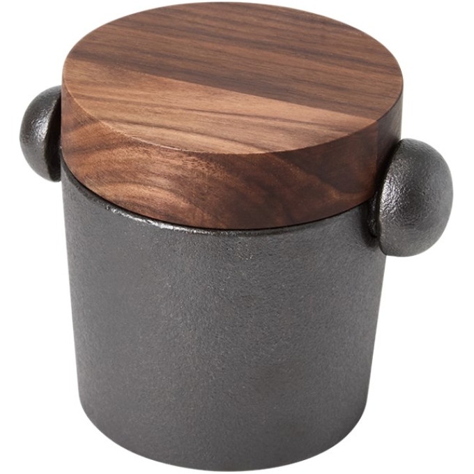 Ovanpå mortel och stöt ligger ett vackert valnötslock som även det är mångsidigt. Vänd locket så är det en perfekt hållare till stöten utan att den smutsar ner på arbetsbänken. Locket kan lika väl användas som ett vackert serveringsfat för din nymortlade kryddblandning.