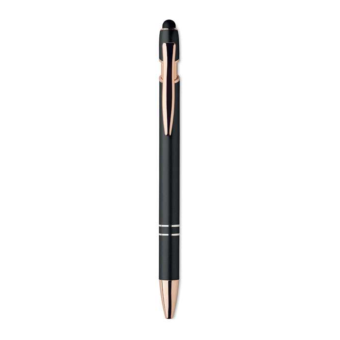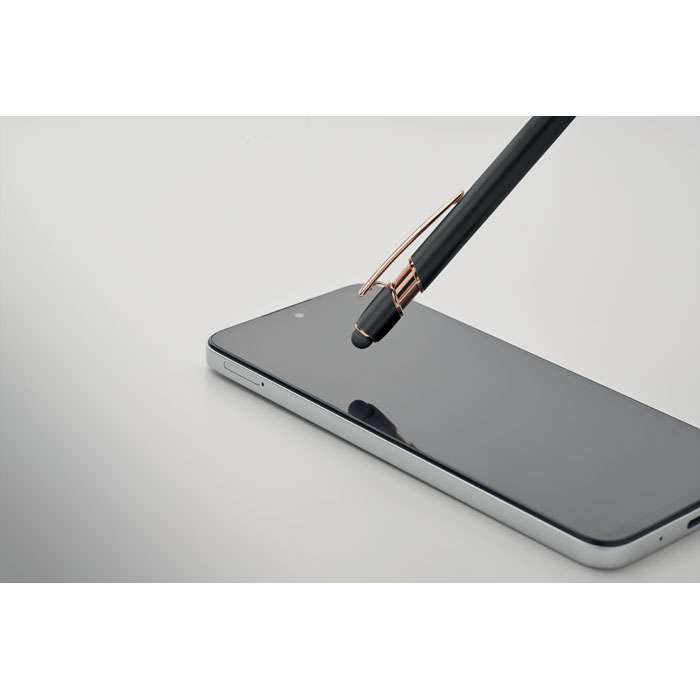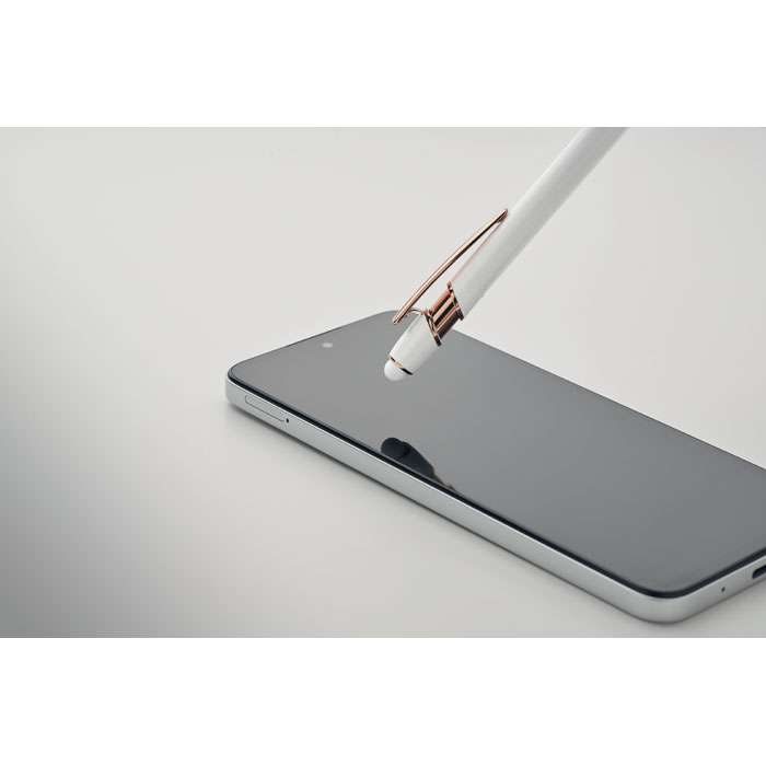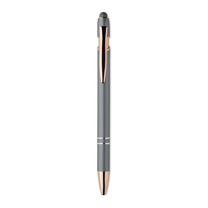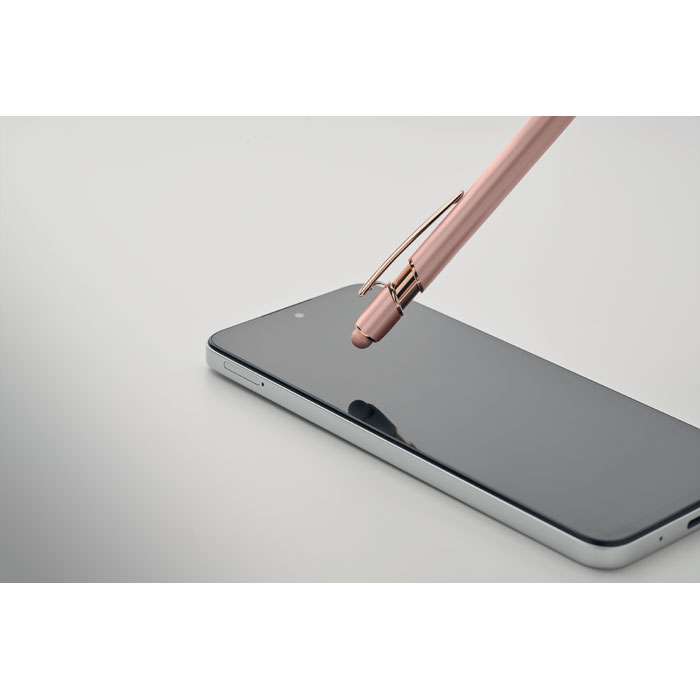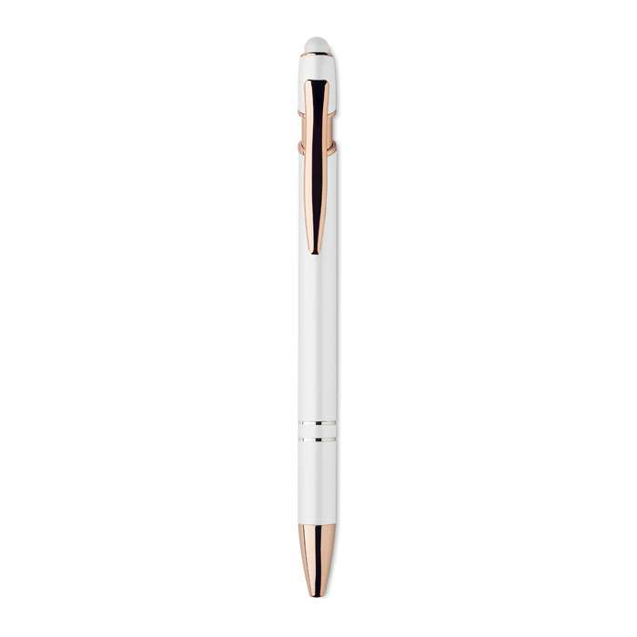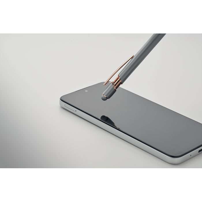 Kulspetspenna i återvunnen aluminium med detaljer i roséguld. Blått bläck.