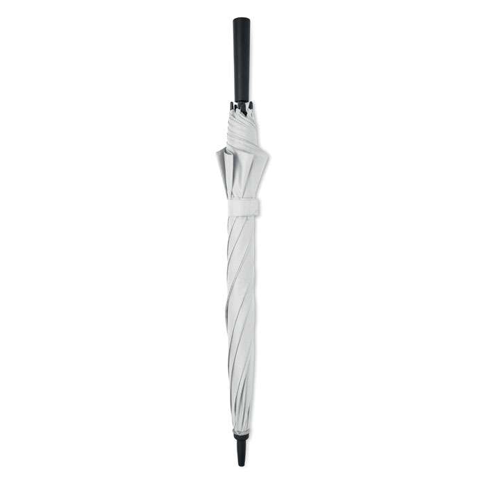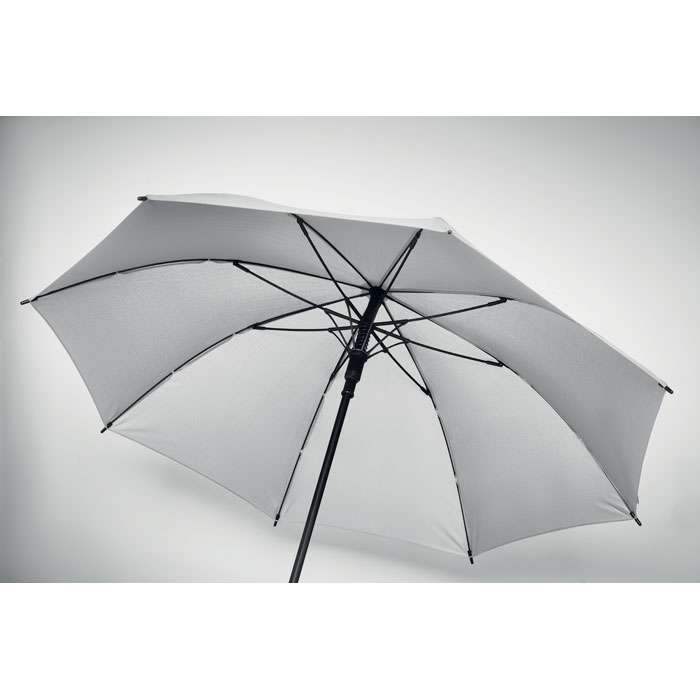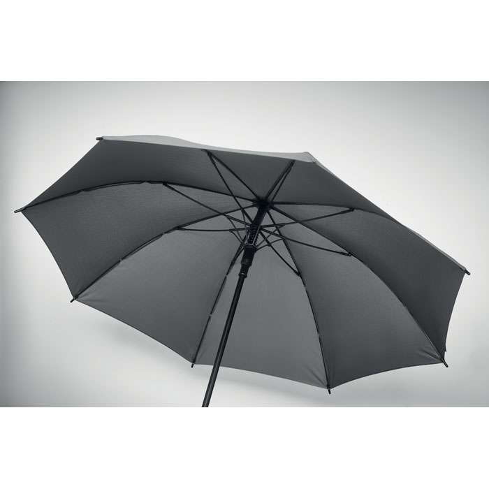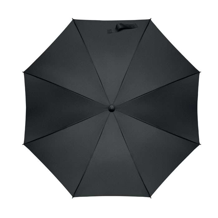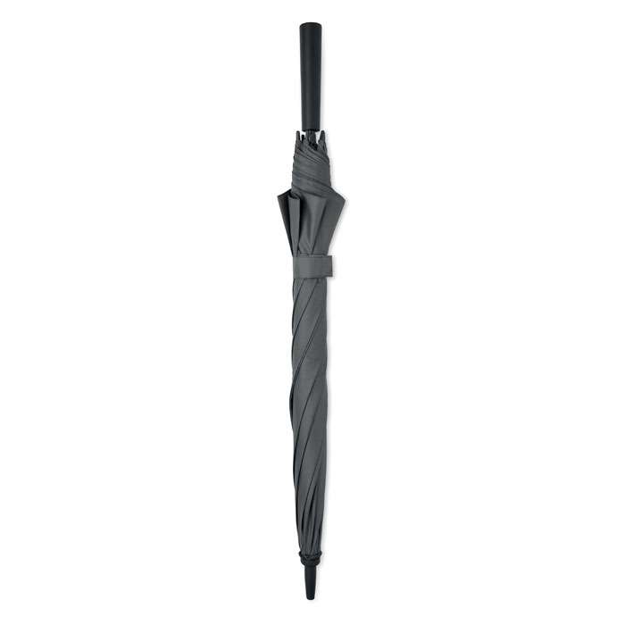 23 tums vindtätt paraply med automatisk öppning i 190T polyester med ram i glasfiber och svartpläterat skaft och plastspetsar. Handtag i ABS med gummifinish. Manuell stängning.