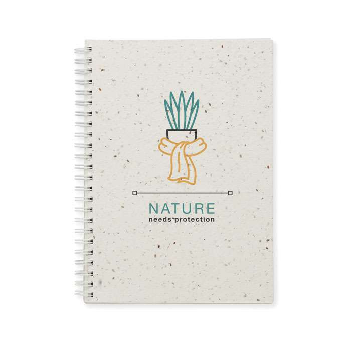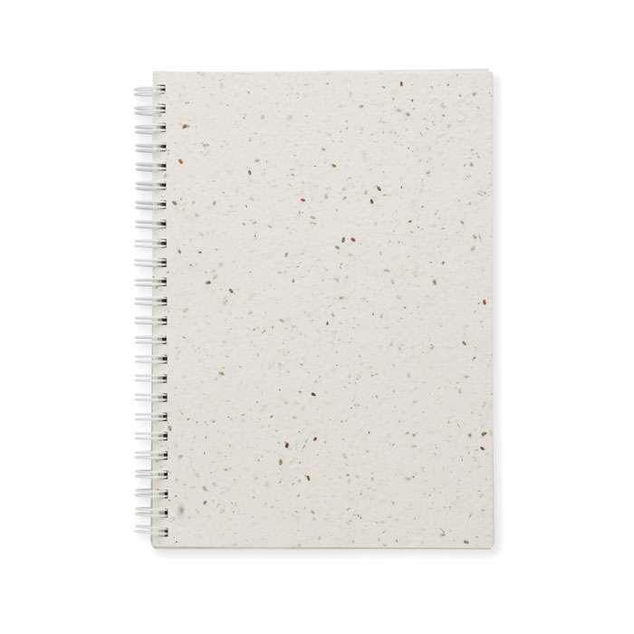 Anteckningsbok ringbunden med omslag av fröpapper A5. Dubbeldäck. 200 linjerade sidor i återvunnet papper (100 ark). FSC®-certified | FSC MIX/FSC RECYCLED, P7.1, FSC-C213206