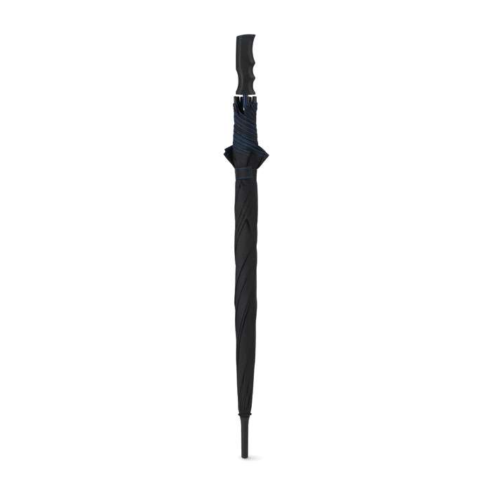 Stormparaply 23 tums i 190T pongee material med färgat fiberglas skaft och spröt, svarta plastspetsar. Paneler i svart och med matchande färgsöm. Ergonomiskt plasthandtag. Manuel stängning och automatisk öppning.