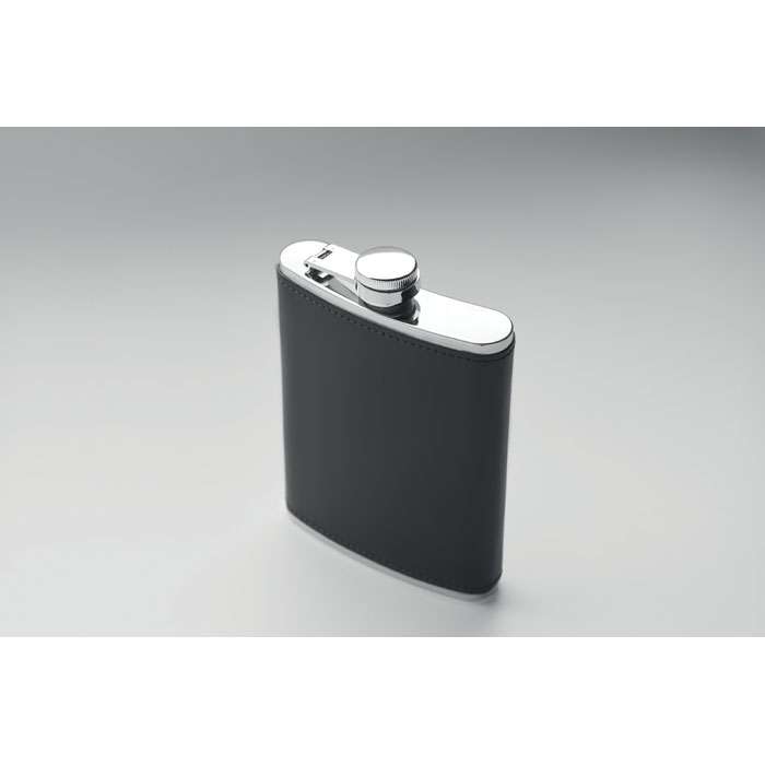 Slimmad plunta i rostfritt stål med PU-läderöverdrag. volym 200 ml.