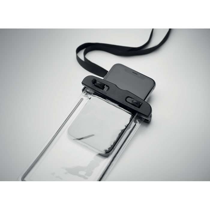 Vattentät telefonväska med justerbart och löstagbart nyckelband. Vattentät klassning: IPX 6. Passar telefoner med upp till 6,7 tums skärm.