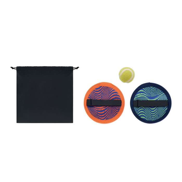 Bollset för stand eller park i neopren. Innehåller 1 boll, ett par bollfångare i RPET-väska med dragsko och meshpåse.