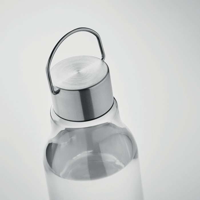Flaska i Tritan Renew™ som är BPA-fri med lock med handtag i rostfritt stål. Läckfri. Volym: 800 ml. Denna produkt är framställd av 50 % plastavfall med hjälp av ISCC-certifierad massbalans.