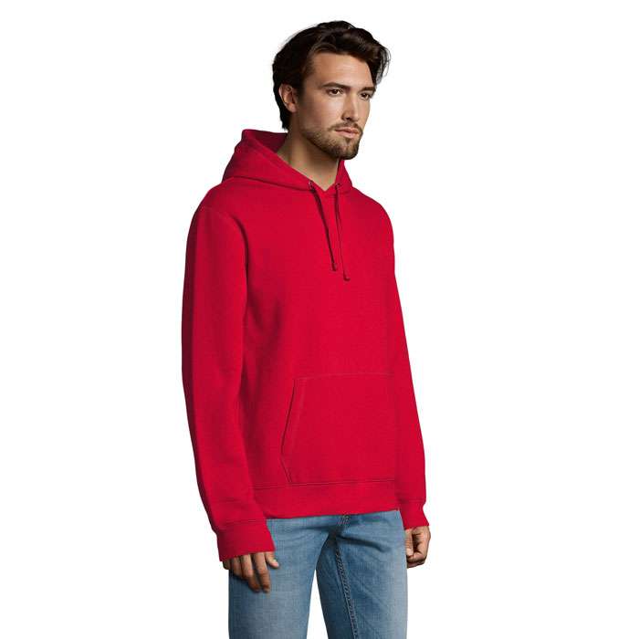 SOL’S SPENCER, SWEATSHIRT MED HUVA, 80 % ringspunnen bomull – 20 % polyester, Borstat foder, Utsida: 100 % bomull FLEECE 280 LSF (tyg med låg krympningsgrad) , Påsydd ficka på framsidan, Skuren och sydd, Fodrad huva med dragsko, 2×2 ribbade muddar i ärmslut och nederkant, Halvmåneformad innerkrage, Tejpad halsringning för matchande storlekar, se storlekstabellen i avsnittet om produktdokumentation.
