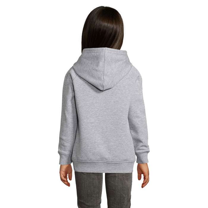 SOL’S STELLAR KIDS, HUVTRÖJA FÖR BARN, 80 % ekologiskt odlad bomull – 20 % återvunnen polyester, 3 garn , Borstat foder , Utsida: 100 % ekologisk bomull FLEECE 280, Skuren och sydd, Raglanärmar, 2×2 ribbade muddar i ärmslut och nederkant, Halvmåneformad innerkrage, Halstejp, Huva med trikåfoder för matchande storlekar, se storlekstabellen i avsnittet om produktdokumentation.
