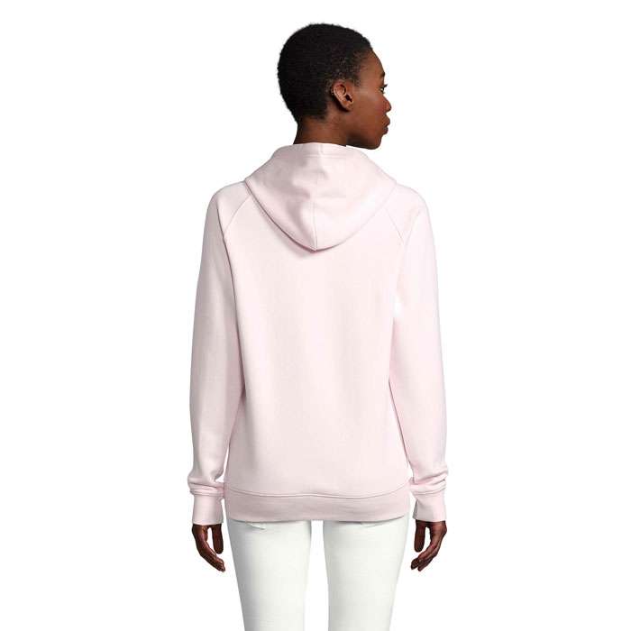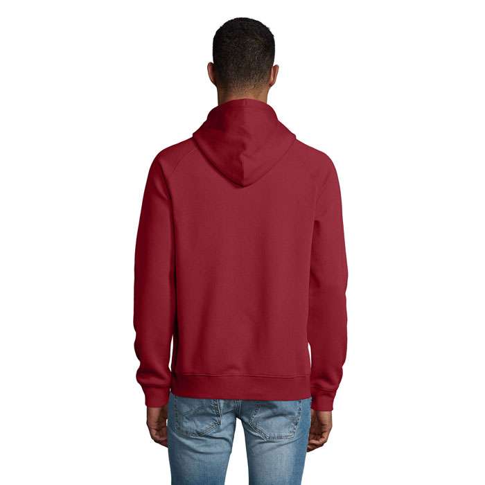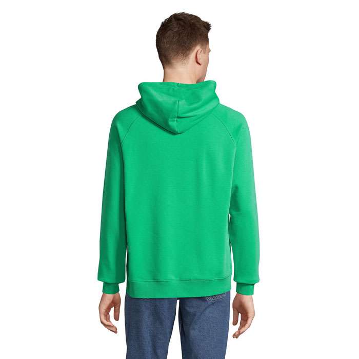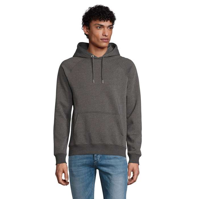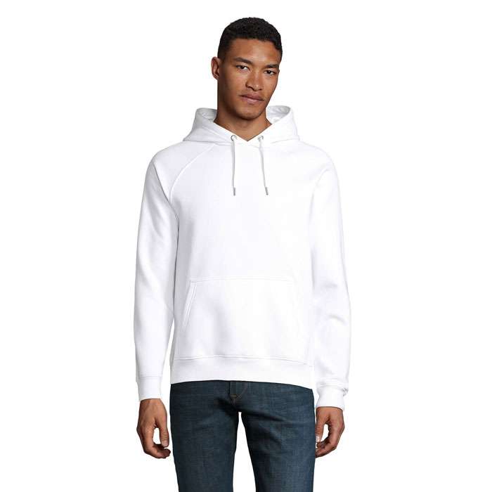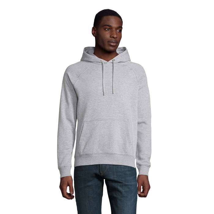 SOL’S STELLAR, SWEATSHIRT MED HUVA, UNISEX, 80 % ekologiskt odlad bomull – 20 % återvunnen polyester, 3 garn , Borstat foder , Utsida: 100 % ekologisk bomull FLEECE 280, Skuren och sydd, Raglanärmar, 2×2 ribbade muddar i ärmslut och nederkant, Halvmåneformad innerkrage, Halstejp, Dragsko med metallöglor och snörstoppar, Huva med trikåfoder för matchande storlekar, se storlekstabellen i avsnittet om produktdokumentation.