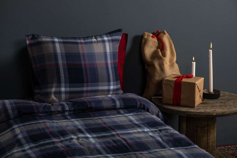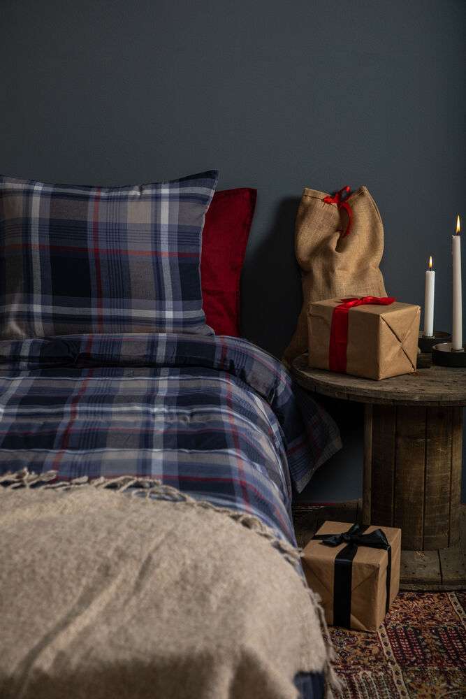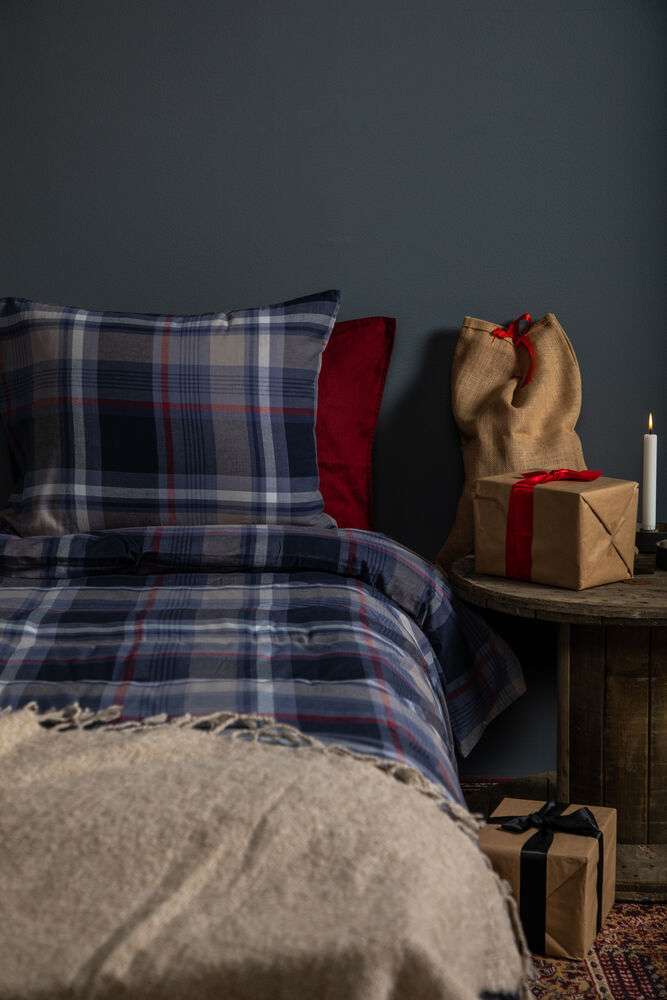 Sätt en personlig touch med detta garnfärgade rutiga bäddset. Det extra mjuka garnfärgade tyget skapar en underbar känsla mot huden och håller dig varm under natten.