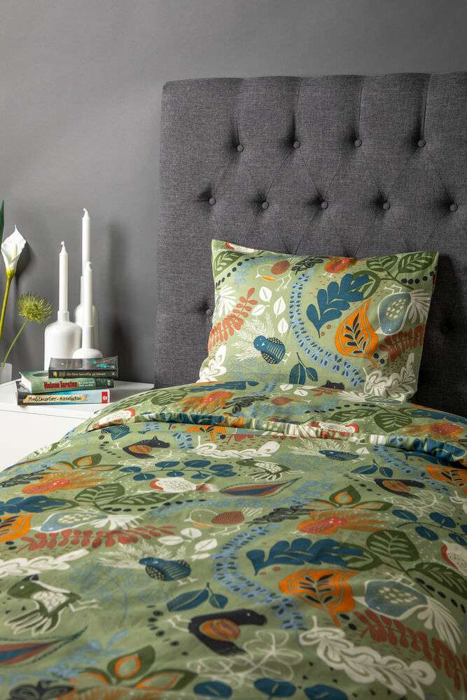 Lekfullt mönstrat bäddset av finaste satin, levereras med ett örngott och ett påslakan.