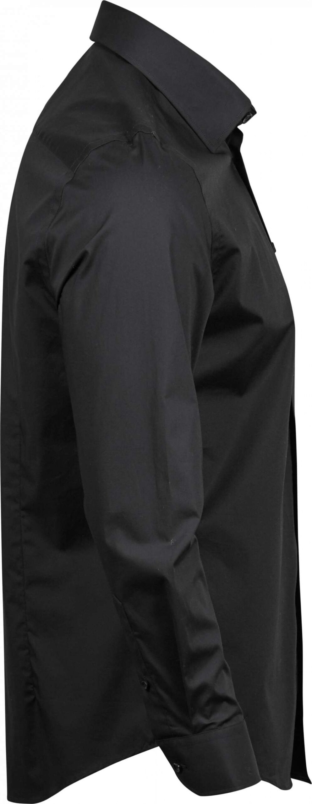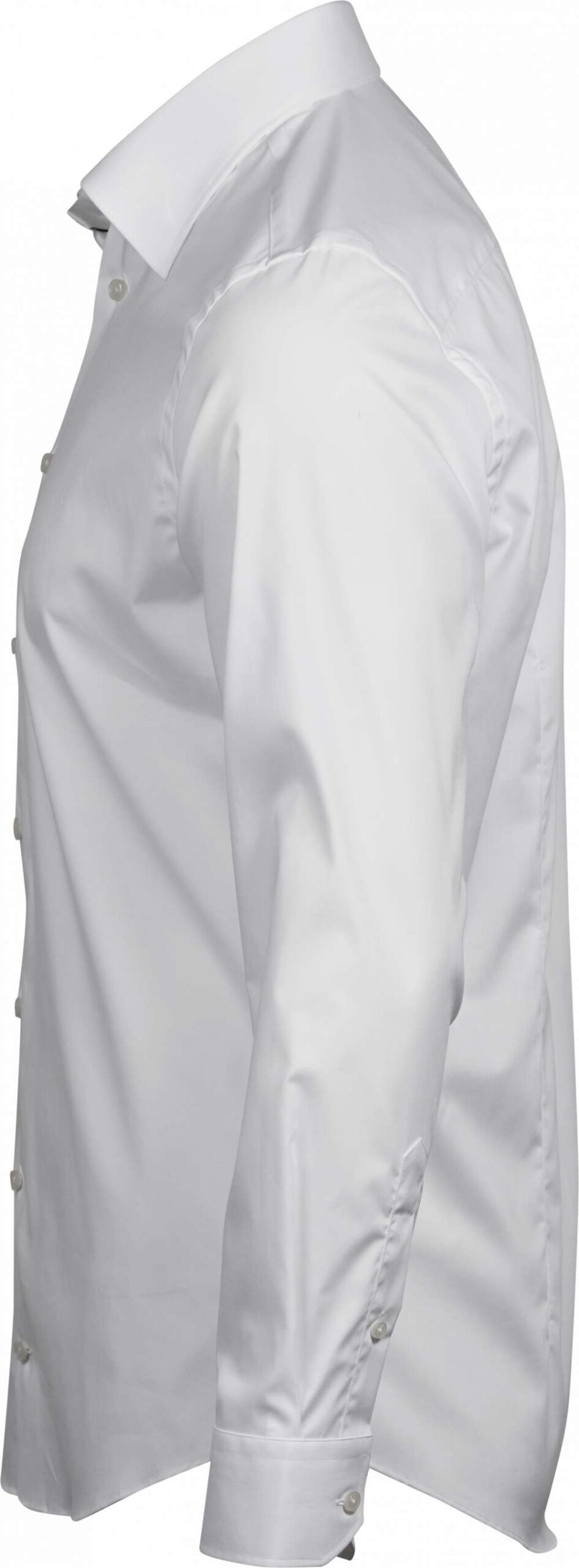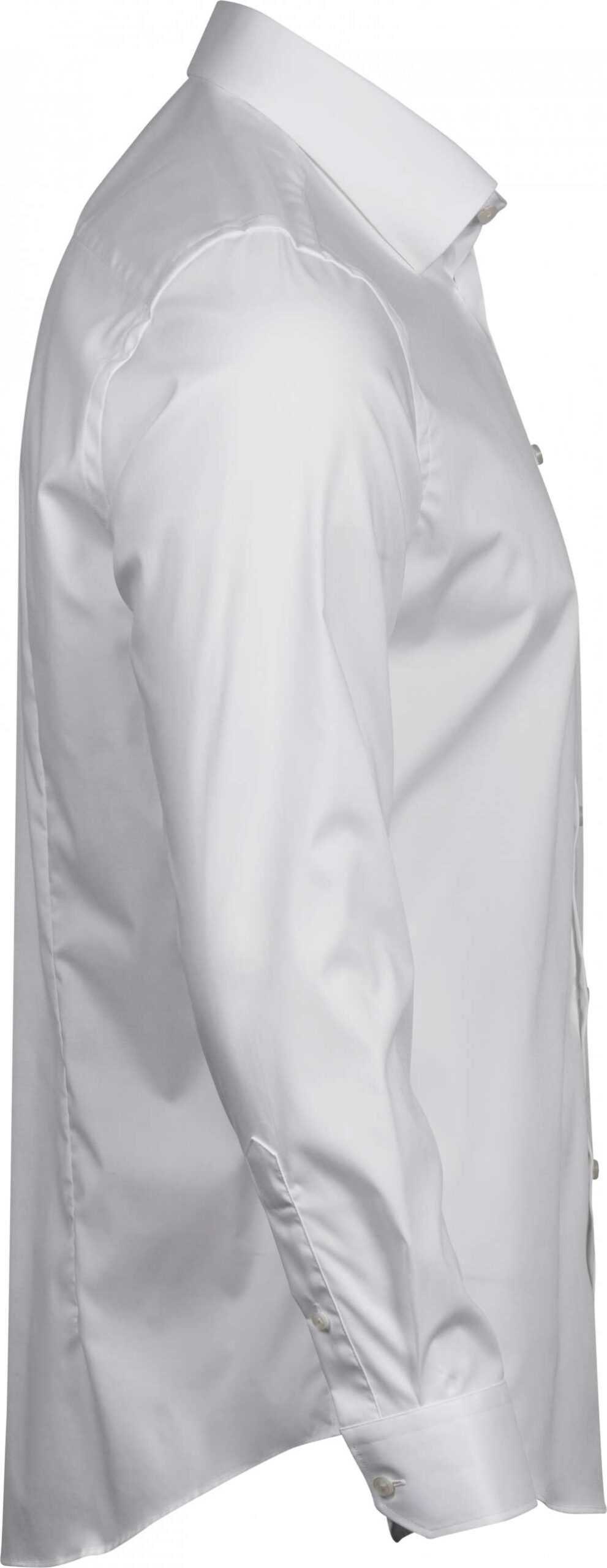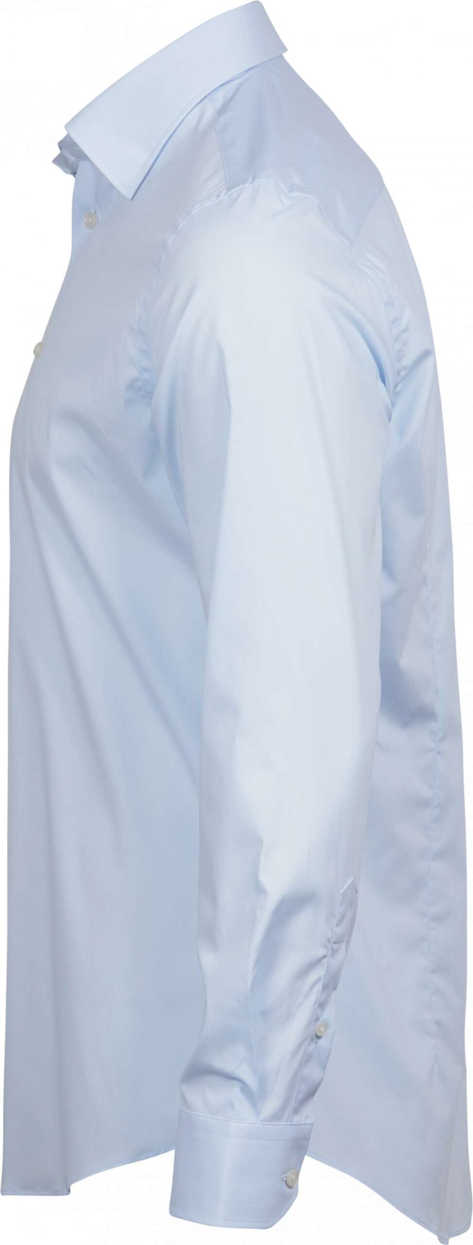 Herrskjorta i slim fit med stretch för total komfort. Krage med dold knappknäppning och två knappar på manschetterna. Skräddarsydd kropp med eleganta pärlemorknappar.
