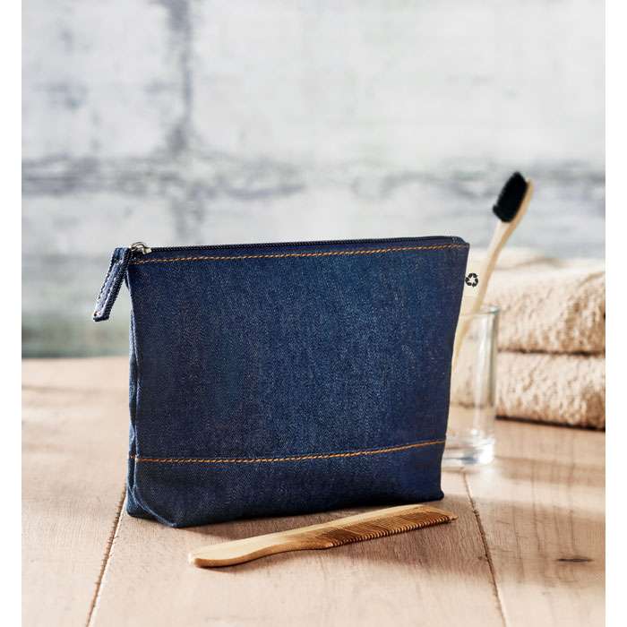 Necessär med dragkedja i 50 % återvunnen bomullsfärgad denim och 50 % bomull. Kvalié: 250 gr/m².