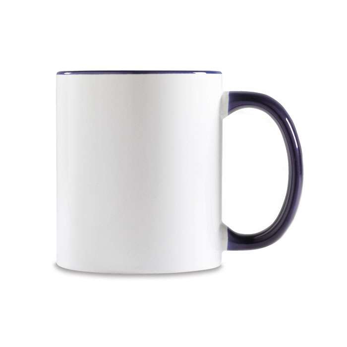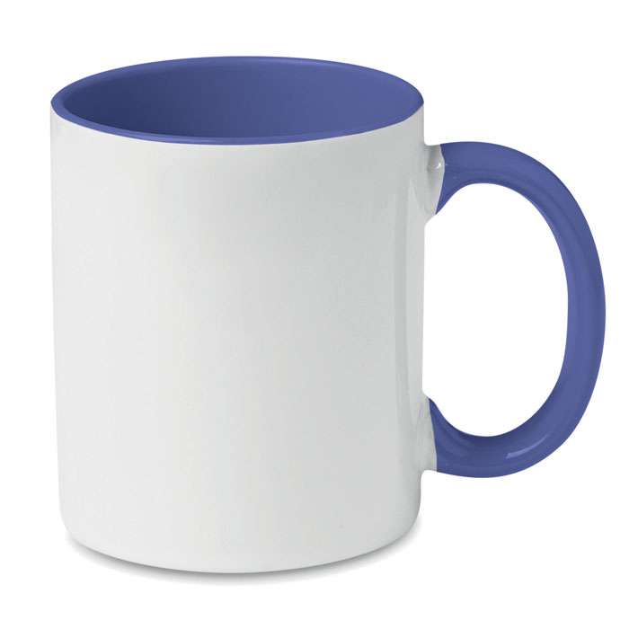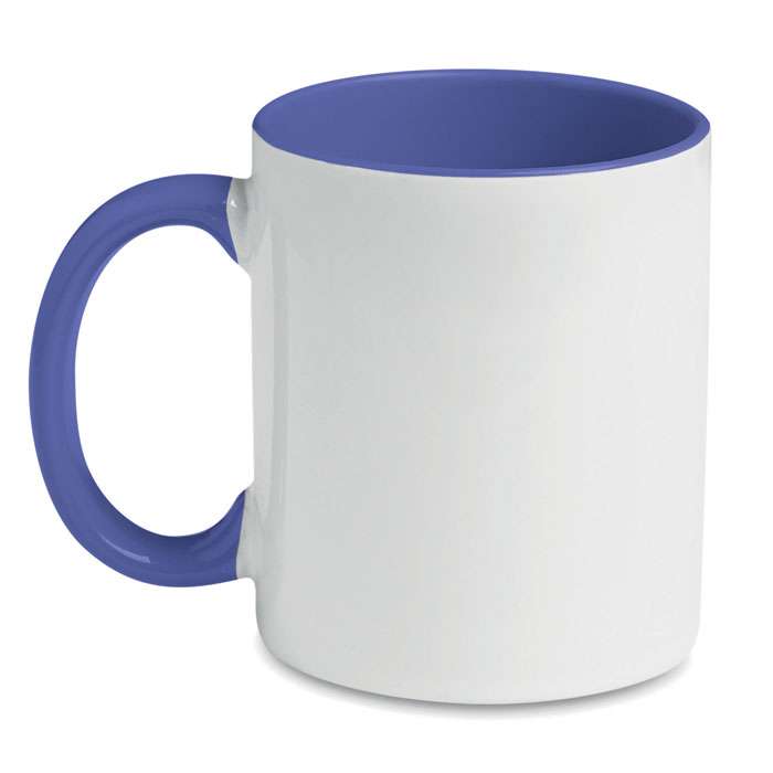 Keramikmugg 300 ml med särskild beläggning för sublimering med färgade handtag och insida. Med sublimering kan du trycka bildmotiv runt hela muggen. För tryck i flera färger – var vänlig och kontakta oss för pris.