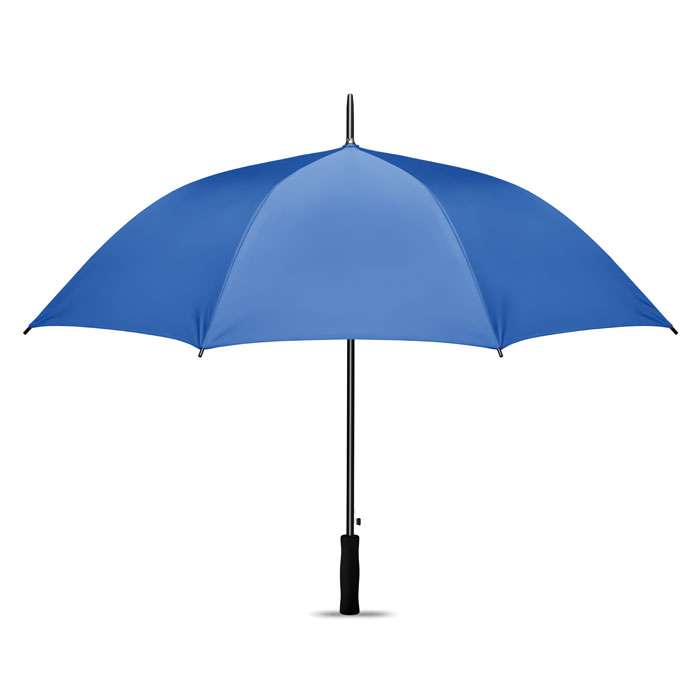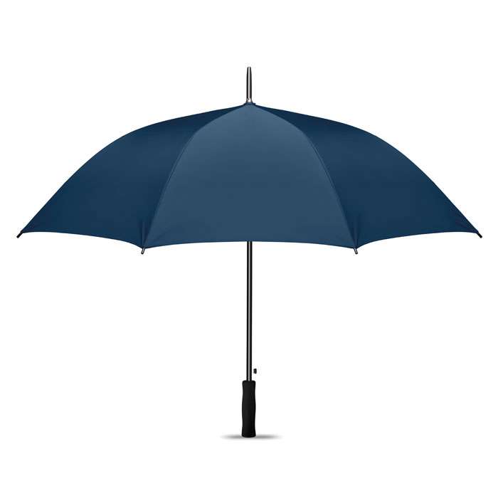 Promenadparaply, 27 tum i 190T polyestermateria med silverfärgad undersida, automatisk öppning. Med svart pläterat skaft och ribbor. Svarta plastspetsar. Rakt svart handtag i mjuk EVA. Manuell stängning.
