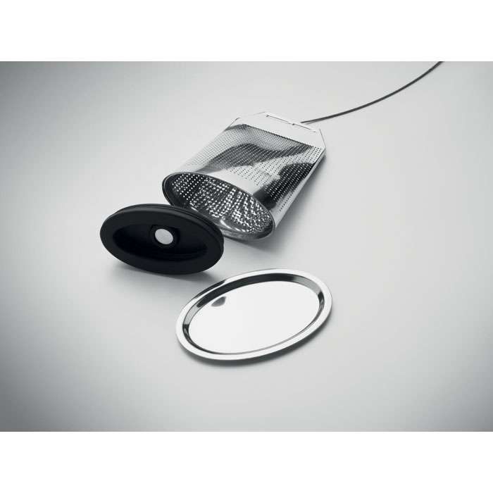 Tesil i rostfritt stål i tepåseform med tallrik. Stor tesil med silikonhandtag.