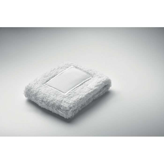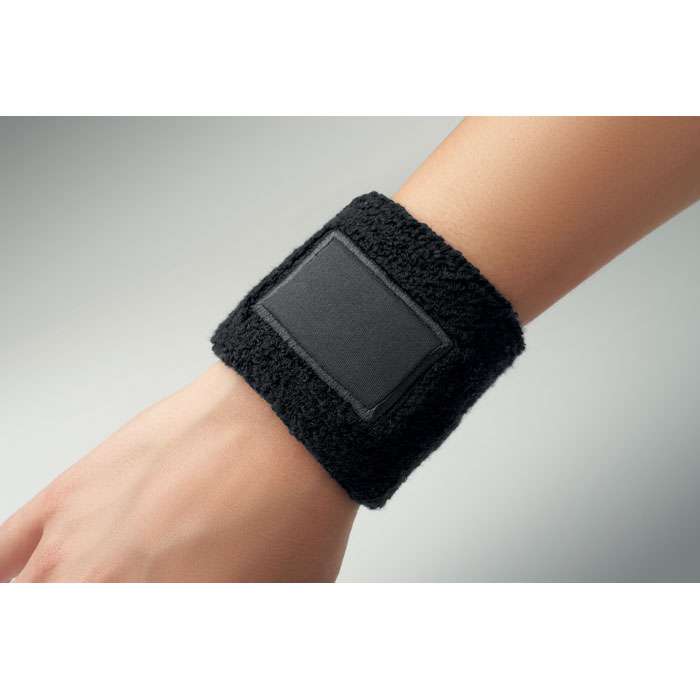 svettarmband i polycotton (79%cotton/13%elastic/8%polyester) med bomullspatch för tryckytan.