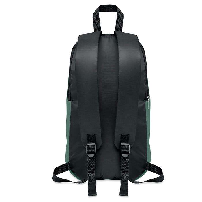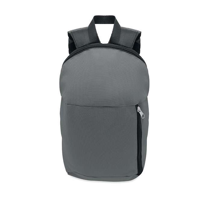 Ryggsäck i 600D polyester med dragkedja och ytterficka. Vadderad i ryggen med 210D polyester.