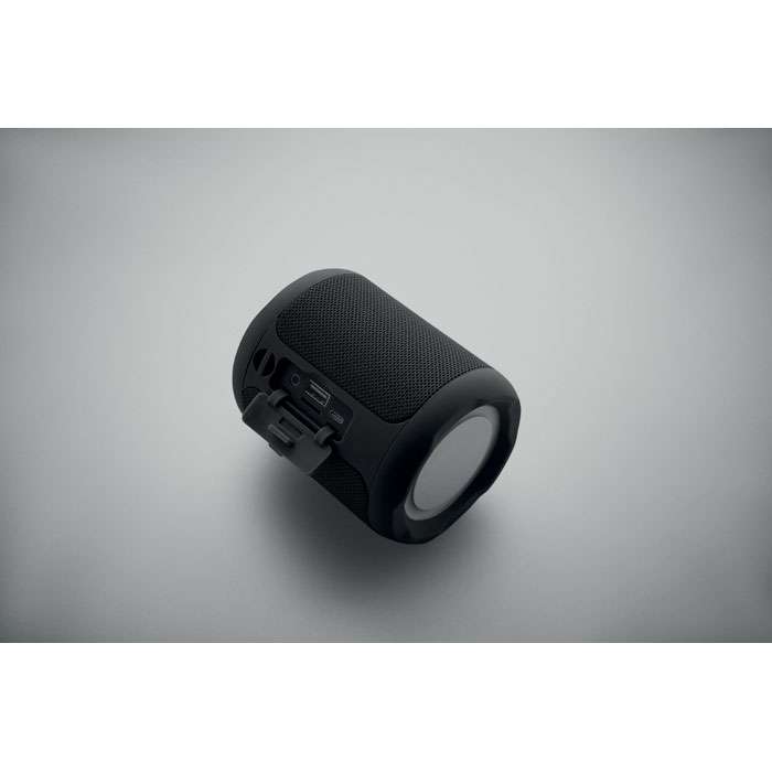 5.0 trådlös högtalare i ABS med RPET-tyg. 1 Uppladdningsbart Li-ION 800 mAh batteri ingår. Innehåller en SD-kortport och en AUX/ USB-kabel. Uteffekt: 5W, 3 Ohm och 5V. Speltid ca 3 timmar.
