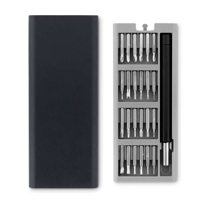 Skruvmejsel kit med 24 st små precisions verktyg i en praktisk låda i ABS-plast med magnetlås.