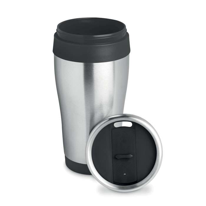 Resemugg med praktiskt ”on the go” lock i rostfritt stål utvändigt och PP plast invändigt. Volym 455 ml.
