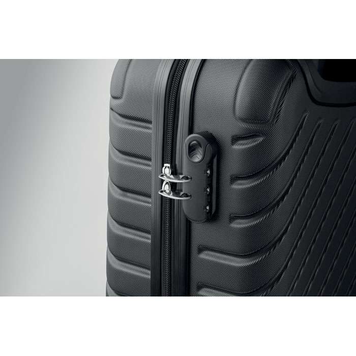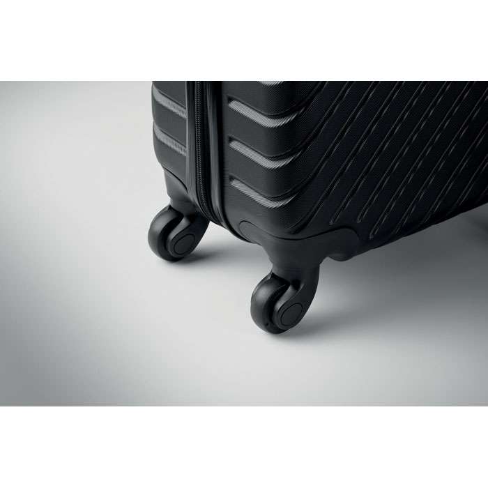 18 tums trolley med hårt skal i ABS. 1 huvudfack och ett innerfack. Inkluderar ett säkerhetslås. Går att köra på 4 hjul.
