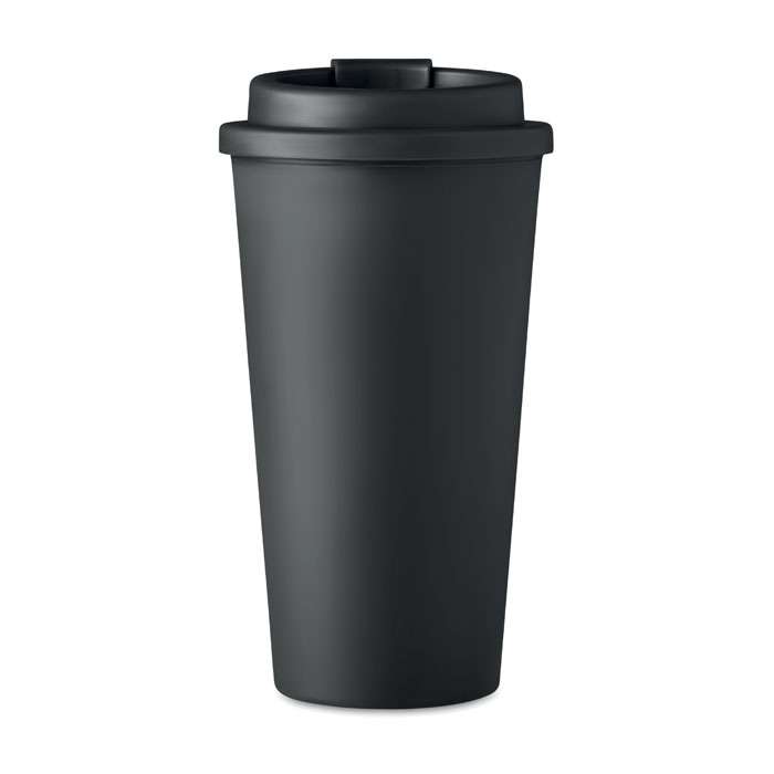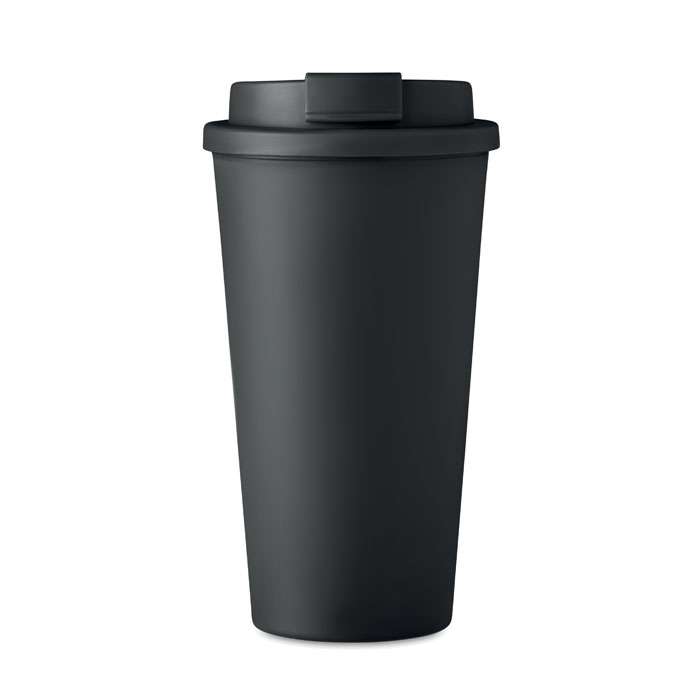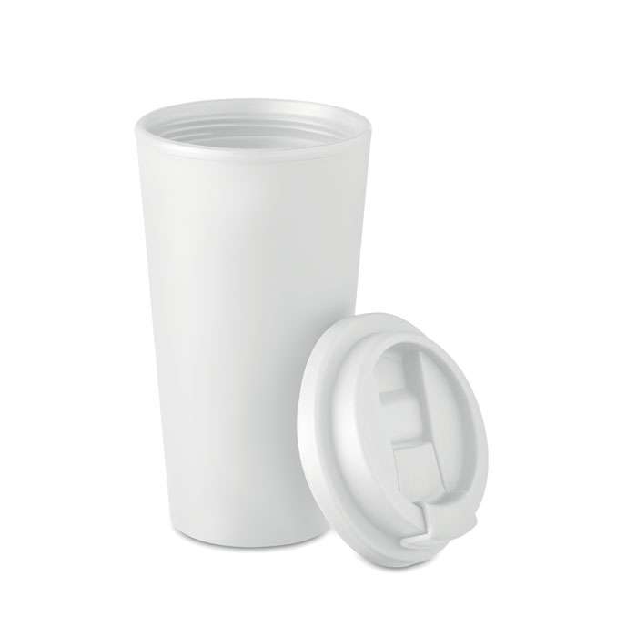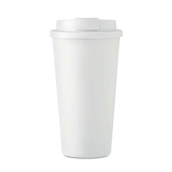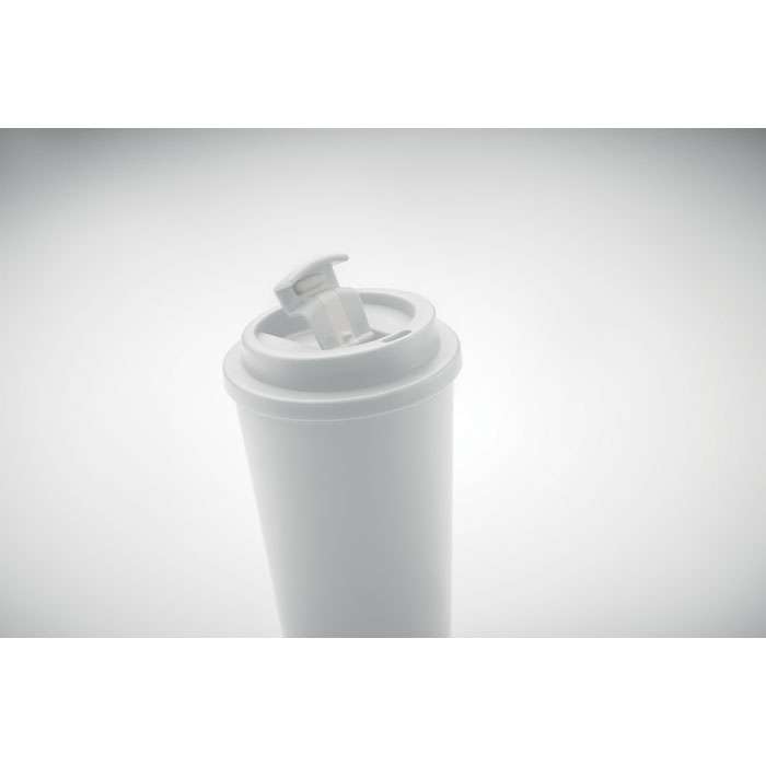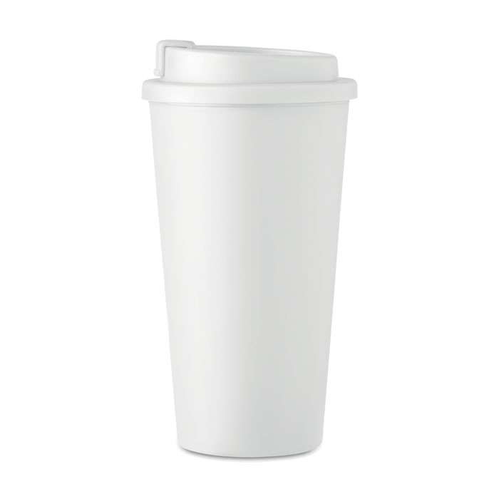 Take away mugg med dubbel vägg av PP. Ta med dig ditt favoritkaffe, te eller annan varm dryck med denna mugg. Det kommer att hålla din dryck varm eller kall, så att du kan njuta av den hela dagen. Volym: 450 ml.
