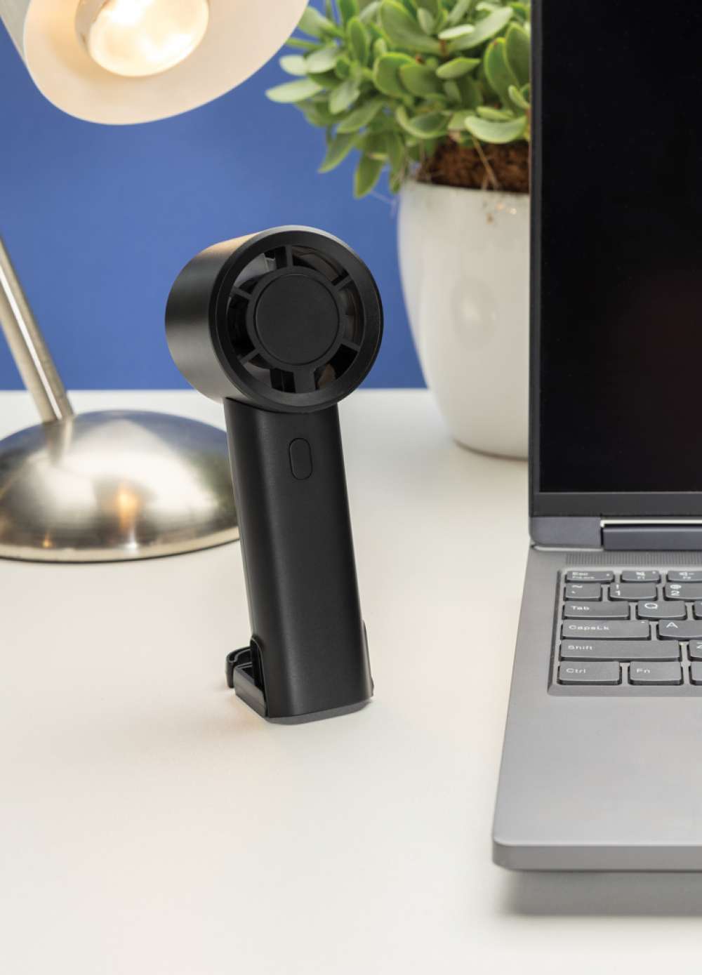 Twist bärbar fläkt, tillverkad i RCS-certifierad återvunnen plast, är en kompakt och mångsidig lösning för att hålla sig sval var man än är. Dess slimmade design, tillverkad av 35 % RCS-återvunnen ABS, rymmer ett uppladdningsbart 1200 mAh Li-ion-batteri som ger upp till 6 timmars driftstid efter endast 3 timmars laddning via den medföljande 30 cm långa svarta TPE USB-A till USB-C-kabeln. Med tre justerbara hastighetsnivåer och en utdragbar krok som kan fungera som ställ, är Twist-fläkten perfekt för användning vid skrivbordet, sängen eller på resande fot.Kåpan är tillverkad av RCS-certifierad återvunnen ABS-plast. RCS (Recycled Claim Standard) är en standard som verifierar återvunnet innehåll i en produkt genom hela leverantörskedjan. Totalt återvunnet innehåll: 35 % av produktens totala vikt.Denna fläkt är PVC-fri och förpackad i en FSC®-certifierad kartong. Maxeffekt: 2 W | Ingångsström: 5 V/1 A.