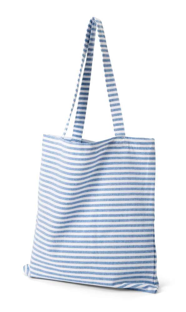 Lätt tygpåse med plats för badlakan, badkläder och annat du vill ha med dig till stranden. Tygpåsens handtag är anpassat för att hänga på axeln men fungerar lika bra att hålla bara i handen. Tåligt tyg av bomull och lätt att tvätta.