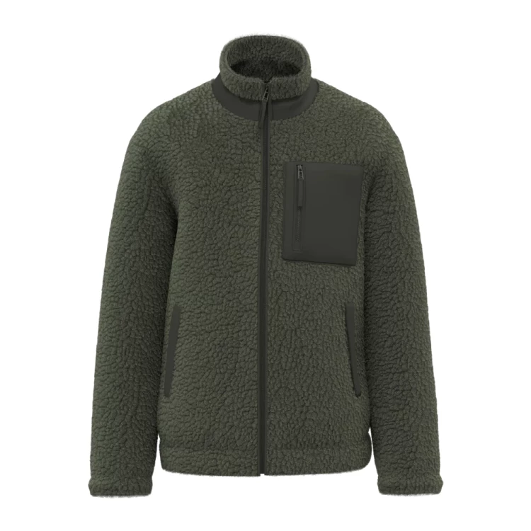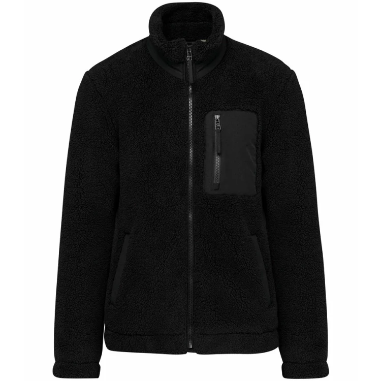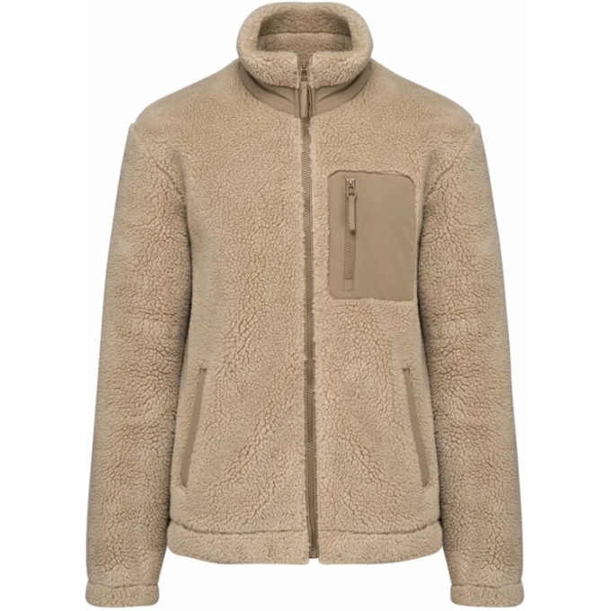Unisexjacka i varmt, lätt och fluffigt tyg av det trendiga sherpa-materialet. Dubbelsidigt sherpa-tyg med ton-i-ton fleece på insidan. Bröstficka på vänster sida och 2 sidfickor. Dragkedja av återvunnen plast. Osynlig resår i ärmsluten och nederkanten. Hängögla. Ingen etikett i nacken, 100% anpassningsbar för ditt varumärke