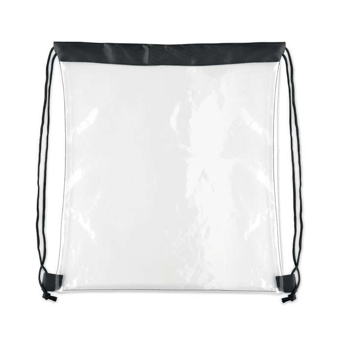Genomskinlig gymnastik påse i EVA och PVC. Snoddar i polyester.