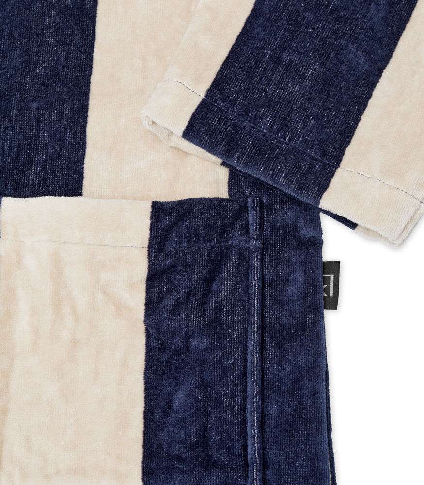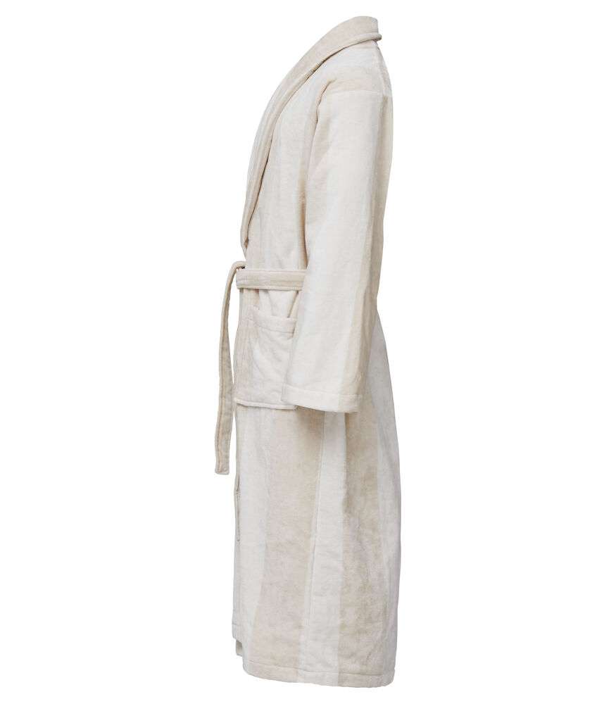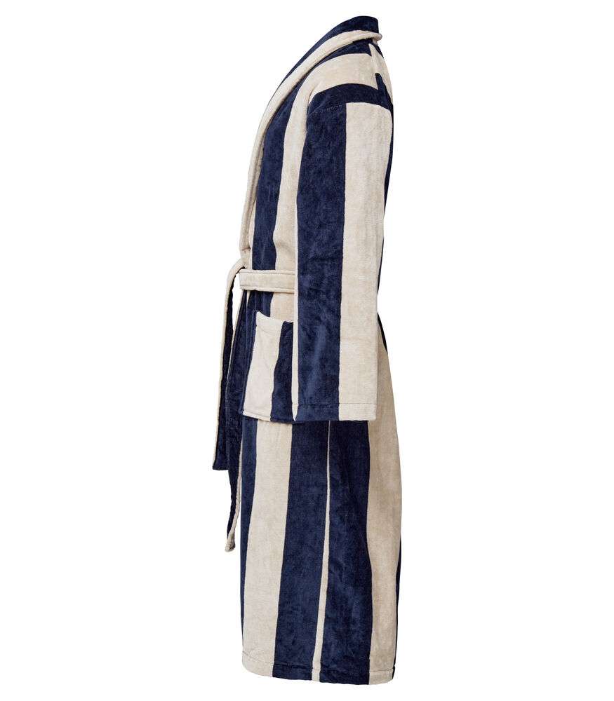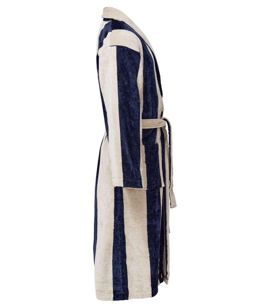 Lyxig morgonrock/badrock i unisex-modell med sofistikerade ränder, bred krage och välgjorda detaljer. Njut av mjuk och tjock bomullsvelour av högsta kvalitet.