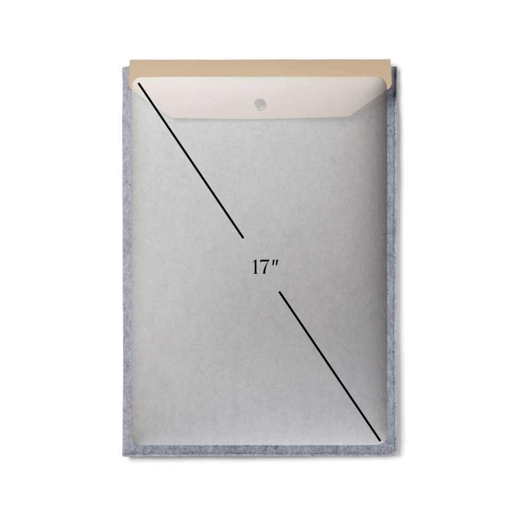 Laptopfodral designat med en stilren och enkel estetik använt av GRS-återvunnen filt med melerad effekt. Fodralet skyddar effektivt din dator från stötar och fukt. Den har en öppning av PU för enkel åtkomst och extra elegans. De inre dimensionerna på detta fodral är 38,2×2,5×27,5cm, vilket gör det lämpligt för datorer med en övergripande storlek på 17 tum. Observera att skärmens dimensioner inte är desamma som hela datorns dimensioner. Certifierad enligt GRS (Global Recycled Standard), GRS- certifiering garanterar att hela leveranskedjan för de återvunna materialen är certifierad. Det totala återvinningsinnehållet baseras på den totala produktvikten. Denna produkt innehåller 82% GRS-återvunnen filt.Passar datorer vars totala storlek är 17 tum, tänk på att måtten för displayen inte är samma som måtten för hela datorn.