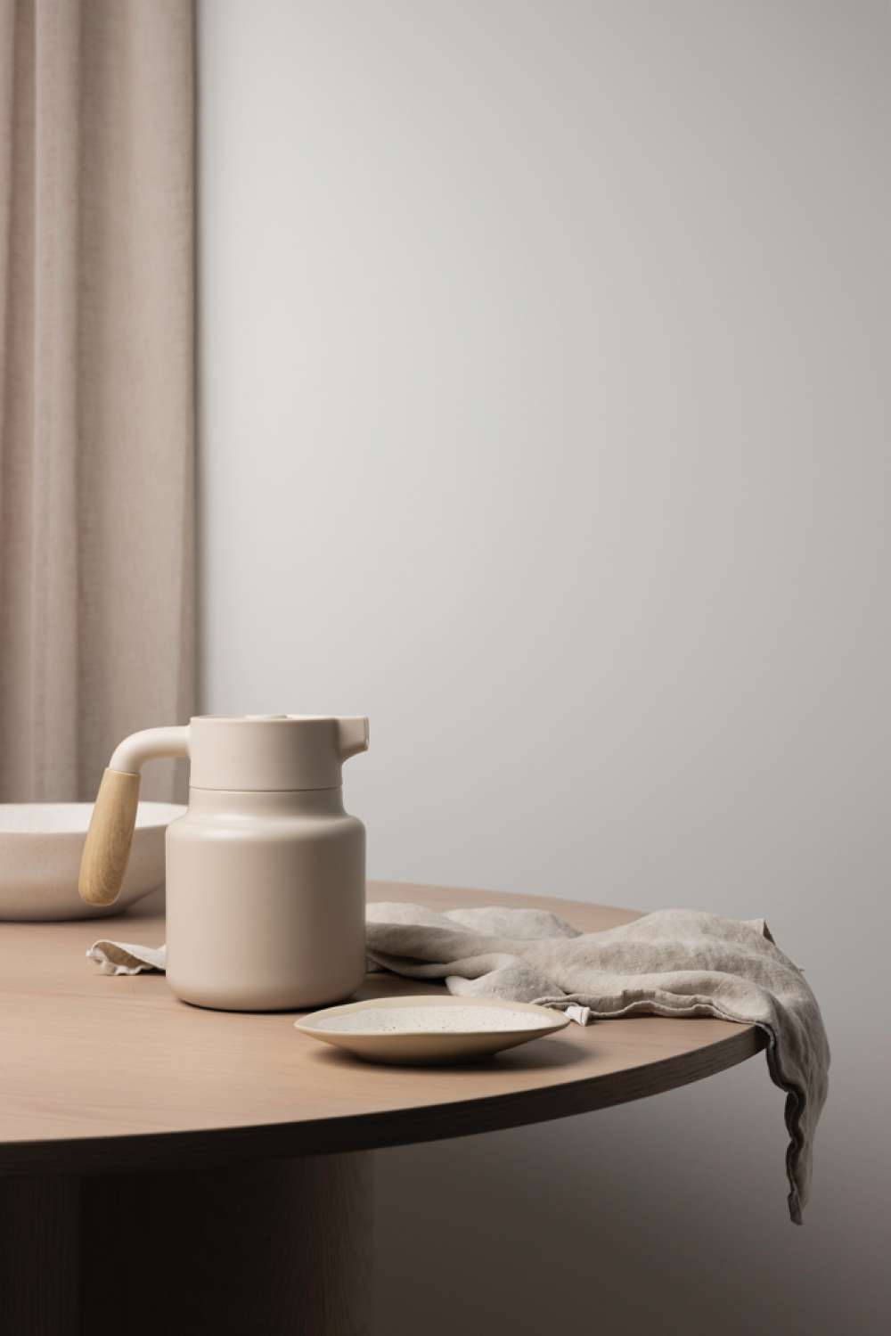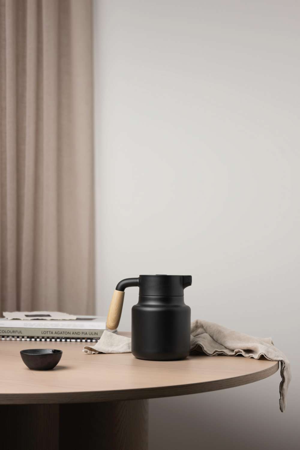 Håll din dryck varm eller kall med denna stilfulla termoskanna tillverkad av RCS-certifierat återvunnet rostfritt stål. Med en generös kapacitet på 1200 ML är den både funktionell och elegant, vilket gör den till ett perfekt komplement till varje bordsdukning. Locket har en praktisk tryckknapp för enkel servering och en stor öppning som underlättar påfyllning och rengöring. Det ergonomiska handtaget i PP med ett naturligt träliknande utseende ger ett bekvämt grepp vid servering. Termoskannan håller drycker varma i upp till 6 timmar och kalla i upp till 24 timmar. Endast handdisk. Ej säker för mikrovågsugn. Certifierad enligt RCS (Recycled Claim Standard), RCS-certifieringen garanterar att hela leveranskedjan av återvunna material är certifierad. Det totala återvunna innehållet baseras på produktens totala vikt. Denna produkt innehåller 62 % RCS-certifierat återvunnet rostfritt stål.