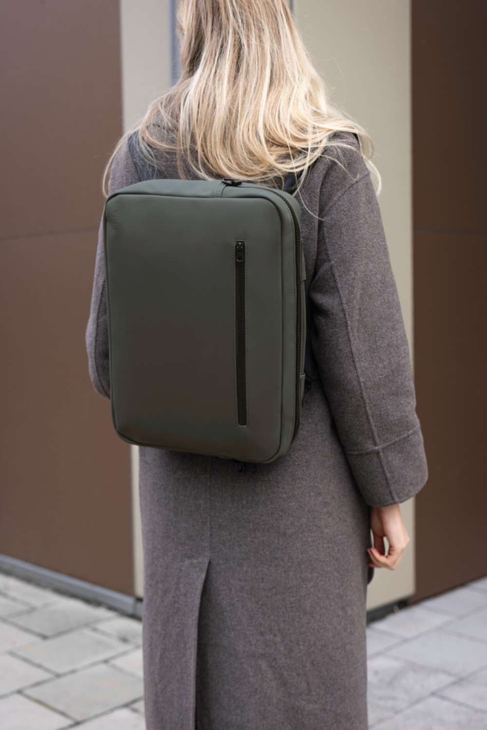 Upptäck väskan med den smarta 2-i-1 lösningen: ryggsäck och datorväska i ett, designad för att underlätta din vardag. Bär den som en stilren datorväska i professionella sammanhang, som en crossbody-väska eller färvandla den enkelt till en ryggsäck när du är på språng. Väskan har justerbara axelremmar, inbyggt handtag, lättillgänglig ytterficka, en innerficka samt laptopfack. Passar laptops upp till 15′. Observera: Displaymått kan variera från måtten på laptopen. Certifierad enligt RCS (Recycled Claim Standard), vilket garanterar att hela leveranskedjan av återvunnet material är certifierad. Den totala återvunna andelen baseras på produktens totala vikt. Denna produkt innehåller 16% RCS-certifierad återvunnen polyester.