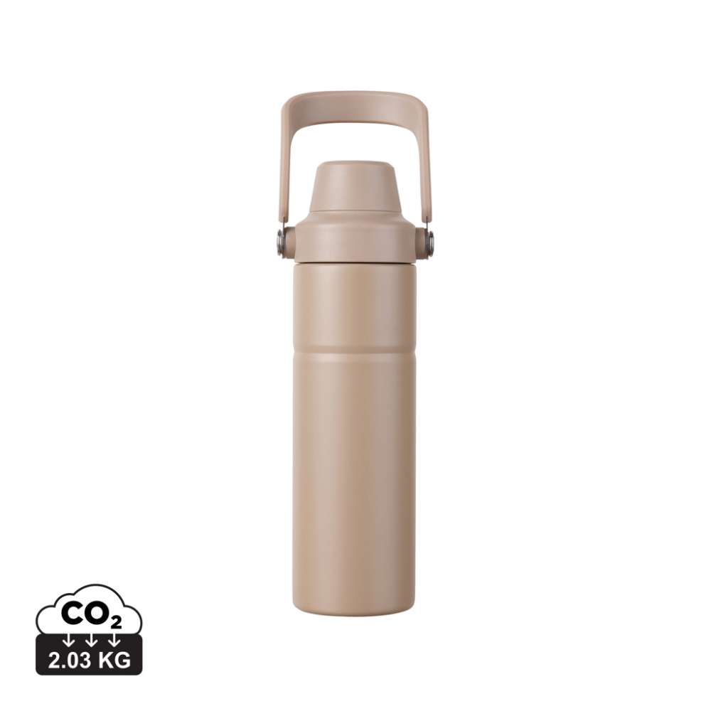 En modern och slitstark vakuumflaska med dubbla väggar, tillverkad av återvunnet rostfritt stål. Utformad för praktisk användning med ett bekvämt handtag, perfekt för äventyr. Locket erbjuder två praktiska öppningar: en för smidigt dryckesintag och en för enkel påfyllning och rengöring. Vakuumkonstruktionen håller drycken kall i upp till 12 timmar och varm i upp till 4 timmar. Tål ej diskmaskin eller mikrovågsugn, endast handdisk. Certifierad enligt RCS (Recycled Claim Standard), vilket garanterar att hela leveranskedjan av återvunnet material är certifierad. Den totala återvunna andelen baseras på produktens totala vikt. Denna produkt innehåller 65 % RCS-certifierat återvunnet rostfritt stål.