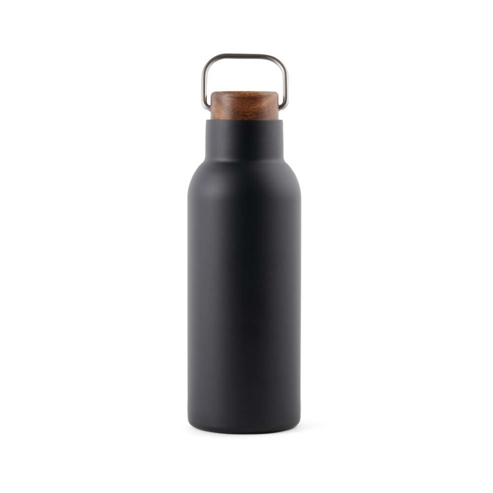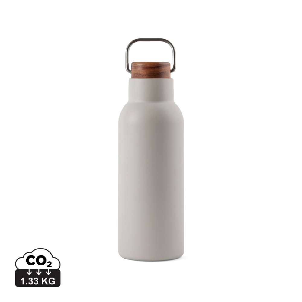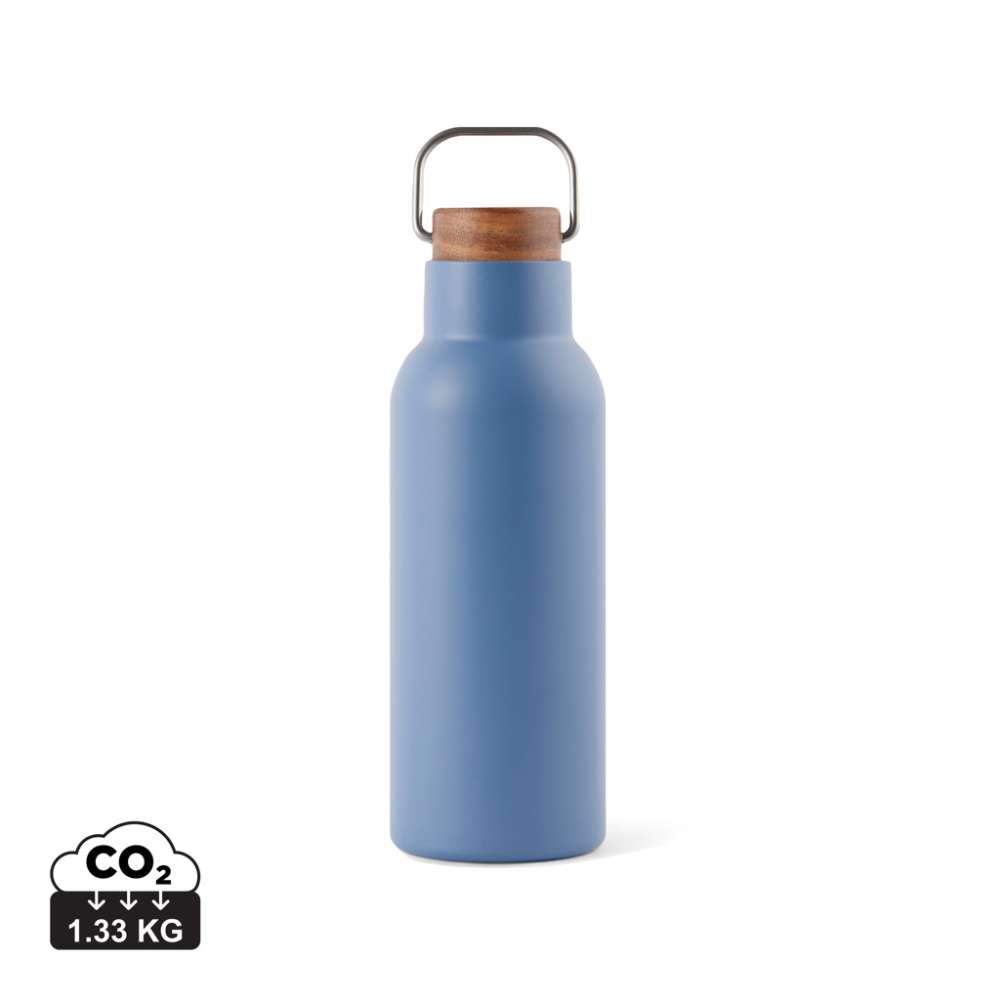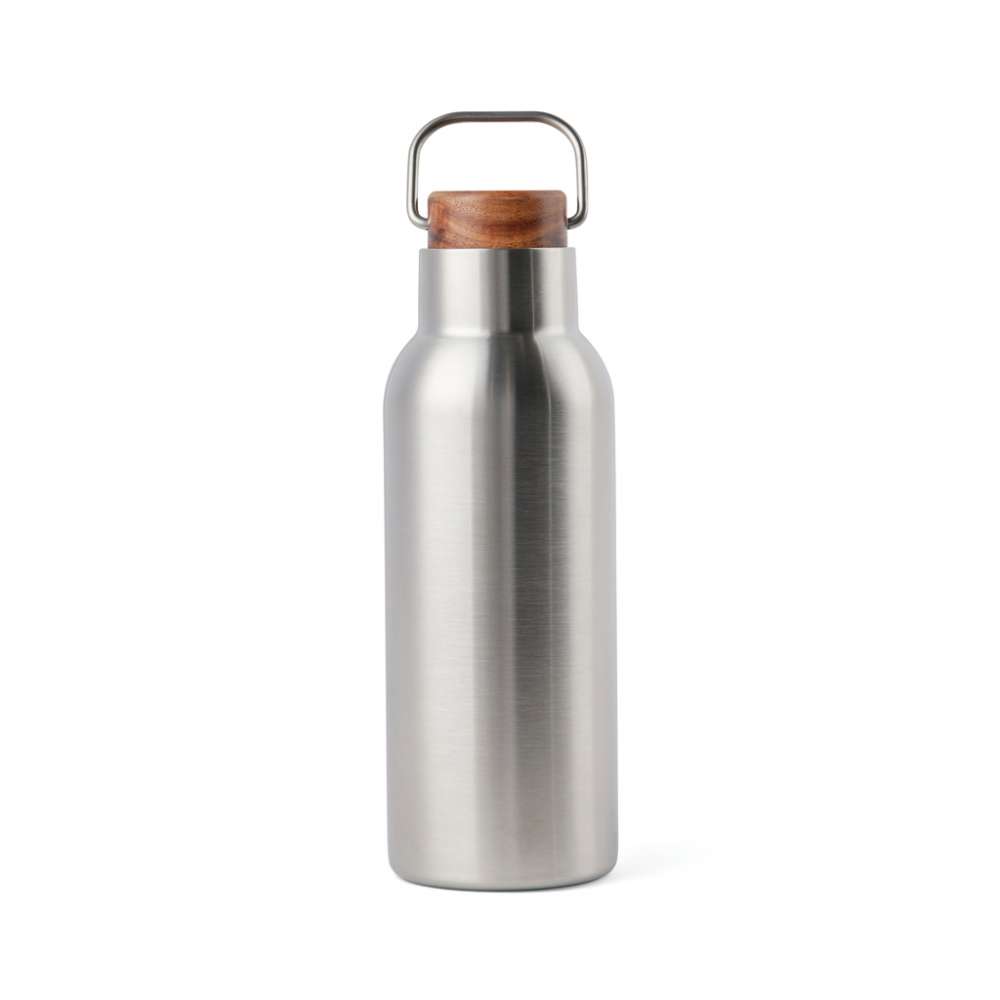 Ciro RCS återvunnen vakuumflaska är en elegant och funktionell designad termosflaska. Flaskan har ett skruvlock i acaciaträ som är försett med en metall ögla vilket gör flaskan enkel att bära med sig när man är på språng. Akaciaträ är ett organiskt material där nyans- och färgskiftningar är naturliga egenskaper. Akaciaträ är ett organiskt material där nyans- och färgskiftningar är naturliga egenskaper. Vakuumkonstruktionen med dubbla väggar i återvunnet rostfritt stål säkerställer att flaskan håller temperaturen intakt under en lång tid på både varma och kalla drycker. Certifierad enligt RCS (Recycled Claim Standard), RCS-certifiering garanterar att hela leveranskedjan för de återvunna materialen är certifierad. Det totala återvinningsinnehållet baseras på den totala produktvikten. Denna produkt innehåller 76% RCS-certifierat återvunnet stål. Flaskan ska endast rengöras för hand. Förpackningen är tillverkad av FSC®-certifierat material.