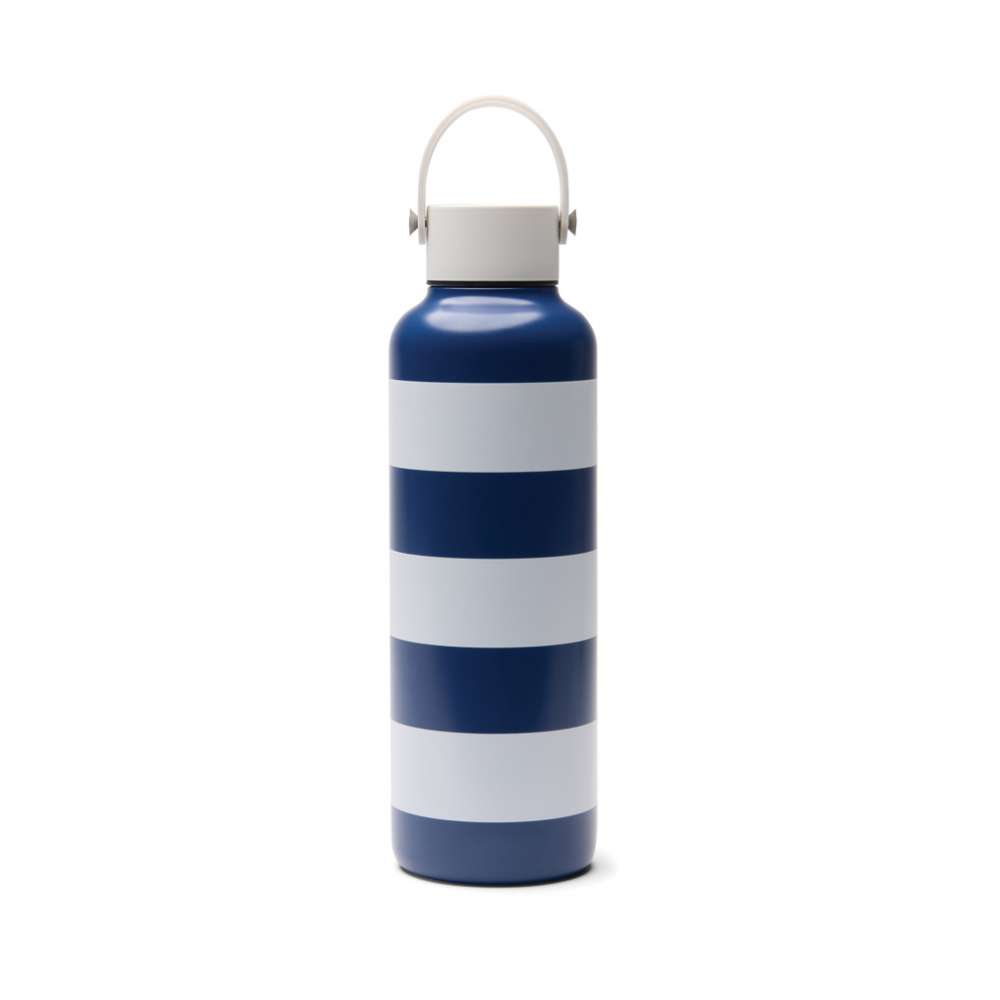 Denna 600 ml vakuumflaska med dubbla väggar är tillverkad av RCS-certifierat återvunnet rostfritt stål. Designad i ett klassiskt tvåfärgat randigt mönster med ett minimalistiskt vitt handtag i silikon. Vakuumkonstruktionen håller drycken kall i upp till 12 timmar och varm i upp till 6 timmar. Perfekt oavsett om du vill svalka dig med en kyld dryck eller njuta av något varmt på språng. Tål ej diskmaskin eller mikrovågsugn, endast handdisk. Certifierad enligt RCS (Recycled Claim Standard), vilket garanterar att hela leveranskedjan av återvunnet material är certifierad. Den totala återvunna andelen baseras på produktens totala vikt. Denna produkt innehåller 80 % RCS-certifierat återvunnet rostfritt stål.