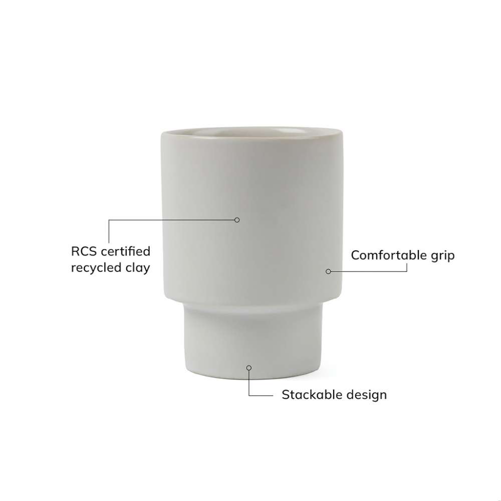 Njut av varje sipp med Nagano Pure-muggen, omsorgsfullt skapad av delvis återvunnen lera. Den minimalistiska designen med en modern twist ger både stil och funktionalitet. Muggen har en praktisk stapelbar form som sparar plats i köket. Certifierad enligt RCS (Recycled Claim Standard), RCS-certifieringen garanterar att hela leveranskedjan av återvunna material är certifierad. Det totala återvunna innehållet baseras på produktens totala vikt. Denna produkt innehåller 10 % RCS-certifierad återvunnen lera.