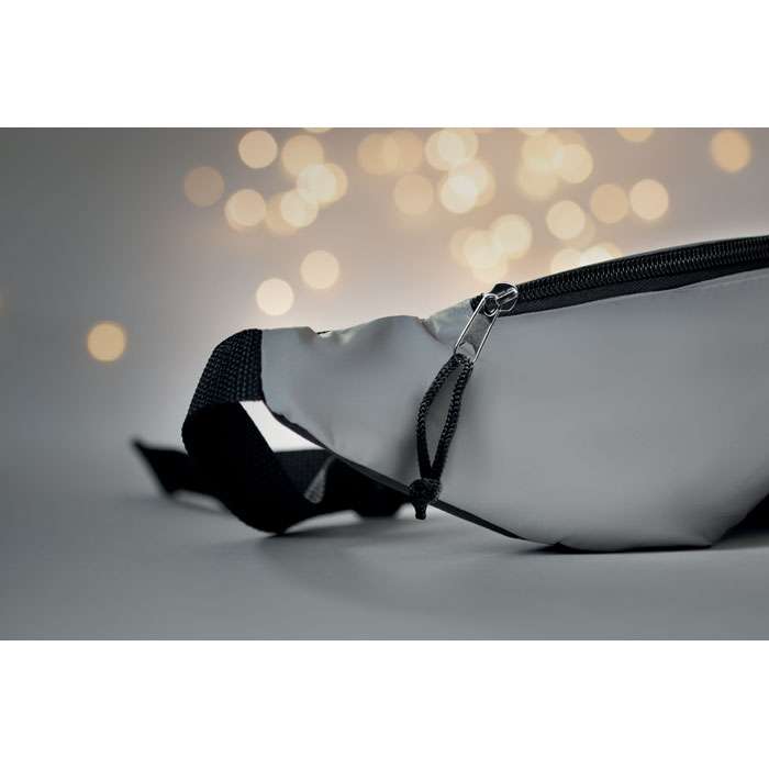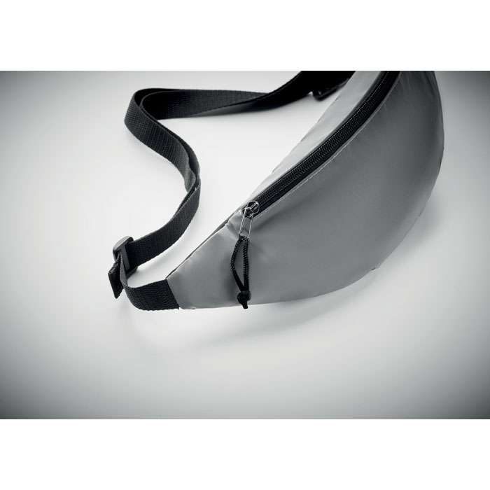 Midjeväska med framsidan i hög reflekterande 190D polyester och justerbar polyesterrem. Ficka med dragkedja.