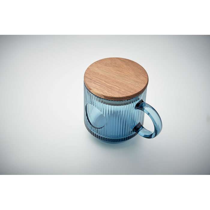 Ribbad glasmugg med lock av akacia. Volym: 300 ml. FSC®-certified | FSC 100%, W16.3, FSC-C213206