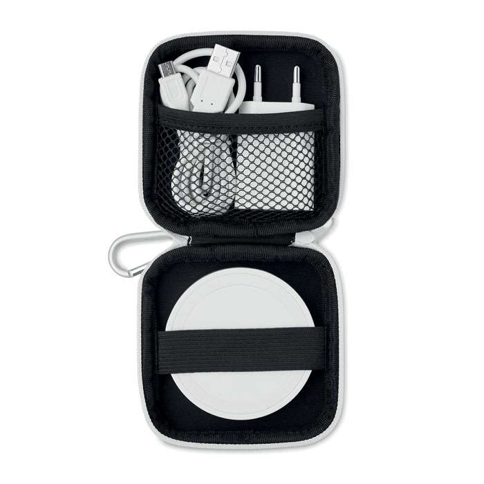 Trålöst laddreseset som är enkelt att ha med på resan. Innehåller trådlösladdplatta, laddare (EU- kontakt ojordad) och kabel (USBA till USB Micro B. Kommer i EVA/PU väska med dragkedja. Uteffekt: DC9V/1.66A (5W).