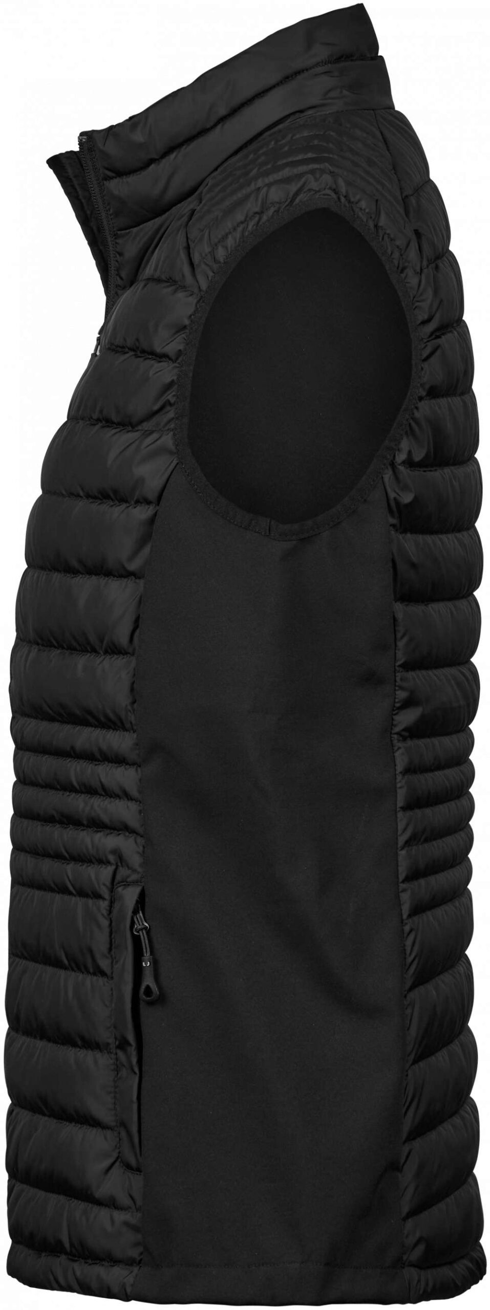 För denna trendiga väst har vi kombinerat 100 % certifierad återvunnen 300T polyester med lätt vaddering och softshell-paneler; vilket skapar en sportig; urban look med enastående komfort och prestanda. Tack vare Bionic Finish® vattenavvisande behandling håller västen dig torr under regnskurar.
